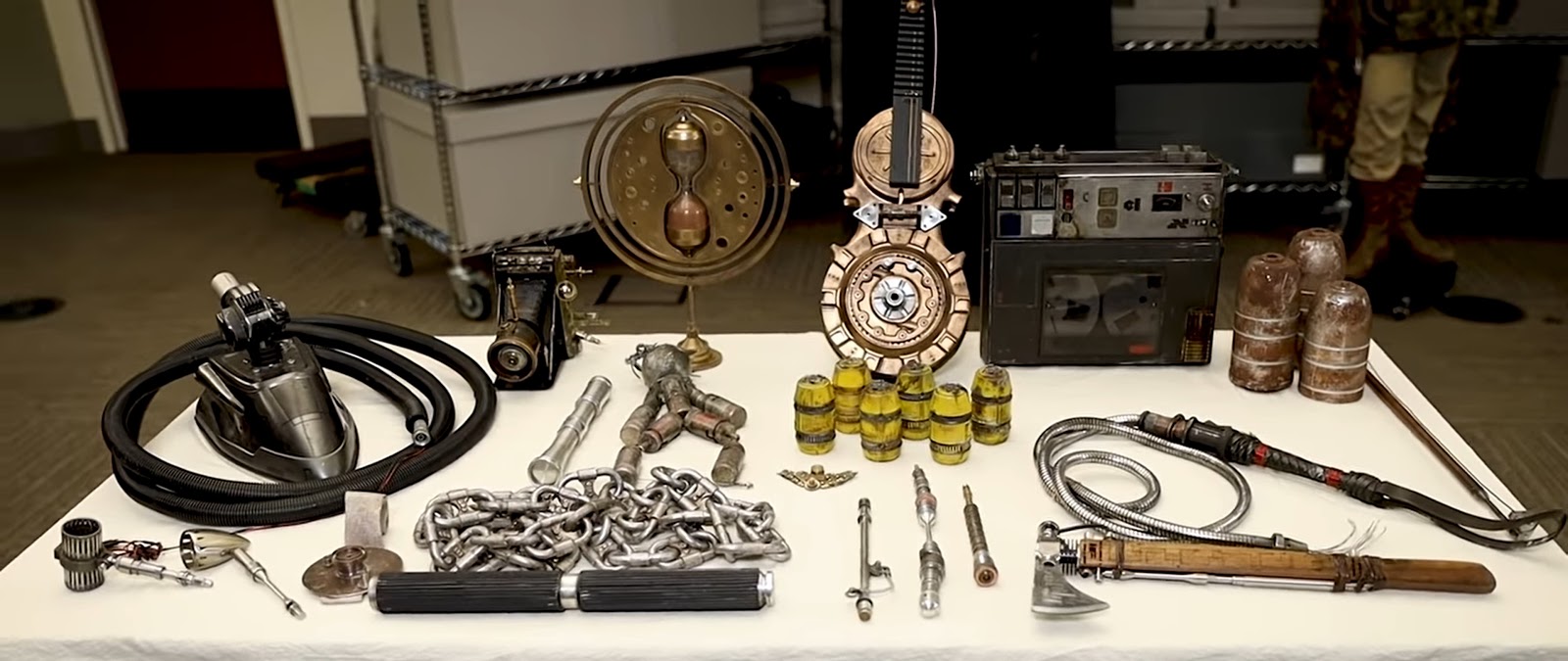 They also list off some more individual references from the props that weren’t revealed in The Skywalker Legacy documentary, such as the Time Turner from Harry Potter and the Prisoner of Azkaban, magic wands from Harry Potter and the Sorcerer’s Stone, a fiddle from Fiddler on the Roof, a reel-to-reel tape recorder from Nixon, TWA pilot wings from Catch Me If You Can, and-- my personal favorite-- the Sankara Stones from Indiana Jones and the Temple of Doom. There are a handful of other items on the table that are not identified, but it would be interesting to hear some guesses as to what they are meant to represent: