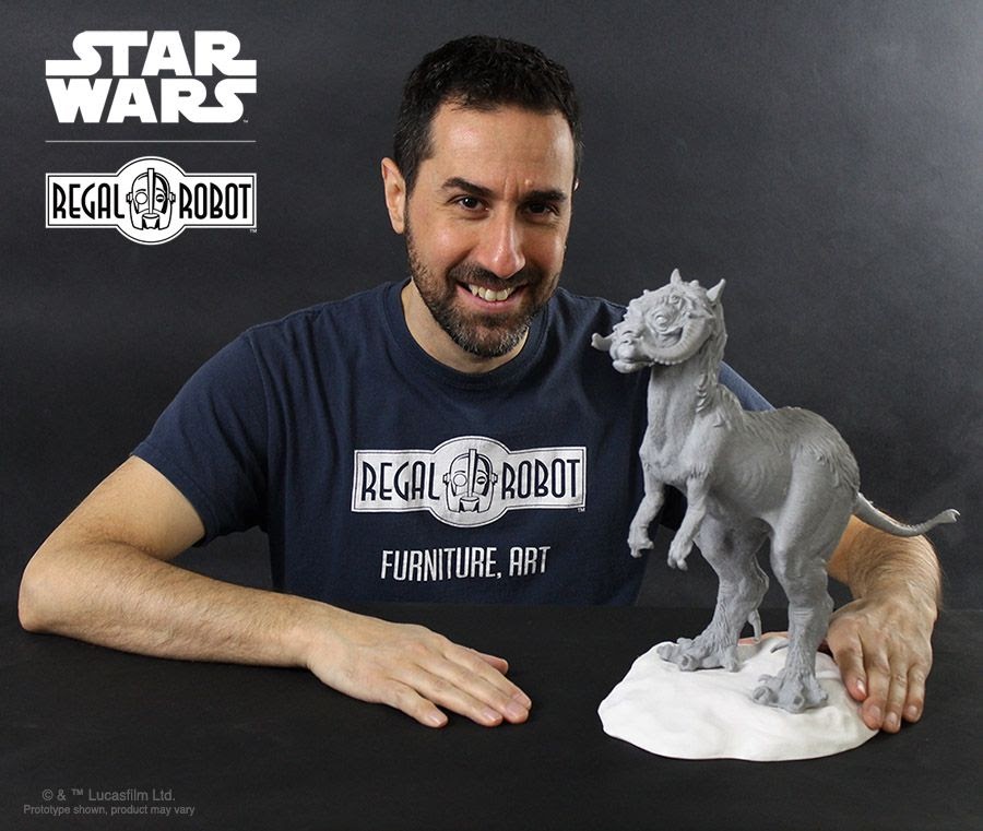 I had been known since the 90s for making pretty accurate replica masks of the Cantina characters. That got us the jobs doing some commercials with Lucasfilm. We did a Super Bowl spot with them for Volkswagen where they recreated the whole Cantina and we did a whole bunch of the Original Trilogy aliens for that. That is sort of the impetus of Regal Robot, coming out of those two things-- the idea of doing furniture as art and theming for people’s homes and then the connection of starting to do these commercials and working with Lucasfilm recreating aliens, building stuff for The Star Wars Show, helping them out at [Star Wars] Celebration… [it’s] this bizarre charmed life of dream gig after dream gig, pinching myself all the way, and having the great fortune of putting together a really really good crew of people that just make me look good all the time.