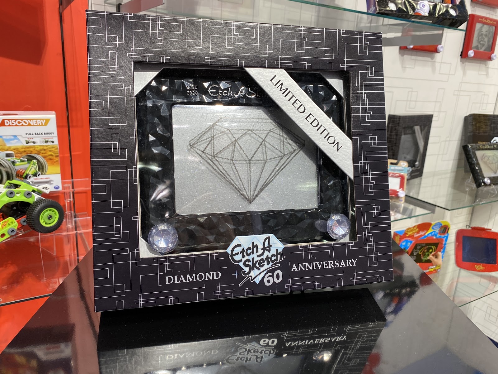 Etch A Sketch is not just a character from Toy Story but also a beloved activity that celebrates it’s diamond anniversary this year. A special diamond edition Etch A Sketch is a limited edition just for this year.