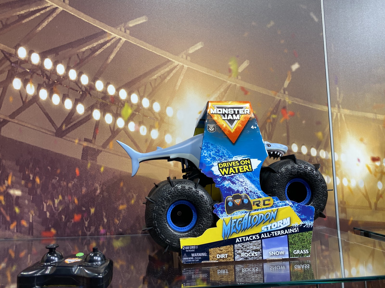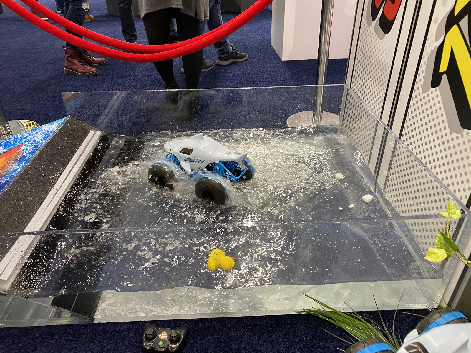 Like the Feld Entertainment traveling show, Spin Master has some fun Monster Jam toys coming your way. The highlight is the Megalodon Storm, which can drive on all terrains, including on water. We got to see a live demo of it transitioning from carpet to water, turning around on a liquid surface, and driving back to carpet. Any kid who loves cars is going to want one, whether they’re a Monster Jam fan or not.