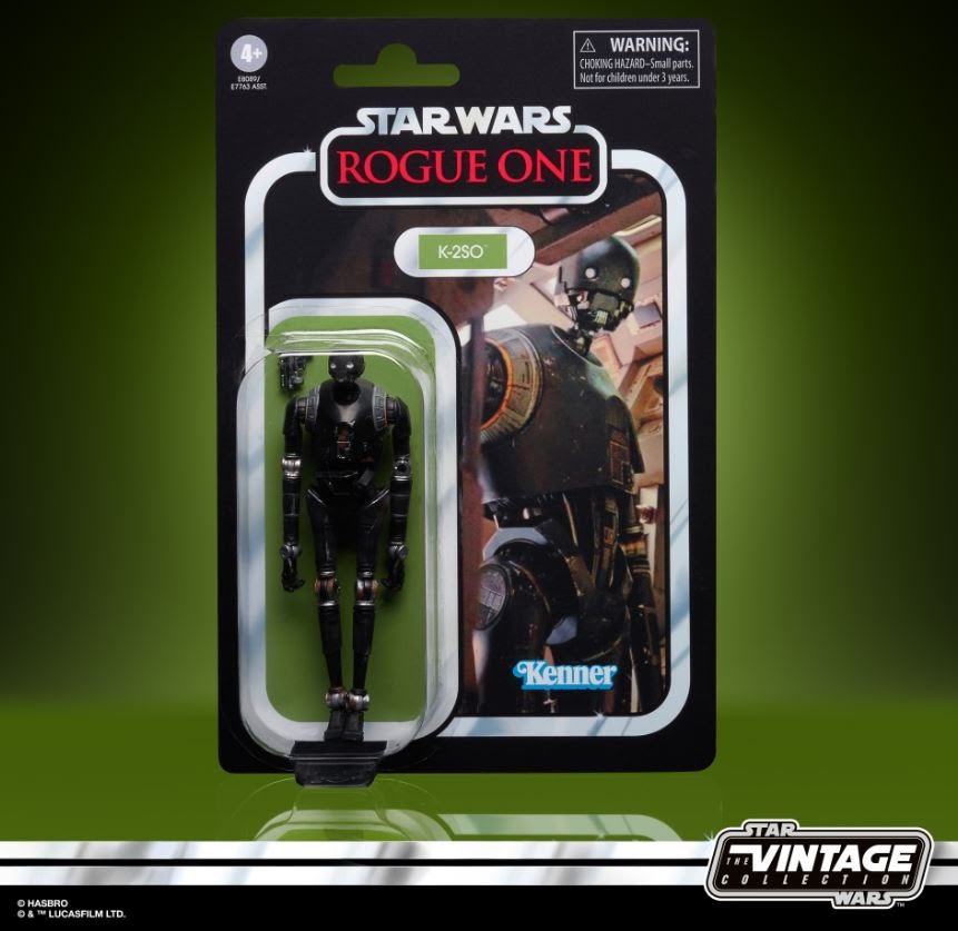 UPDATE 4/17/2020: Today Hasbro kicked off its new “Fan First Friday” initiative by revealing the packaging for the Clone Commander Wolffe, K-2SO, and previously announced Power Droid action figures from the Vintage Collection.