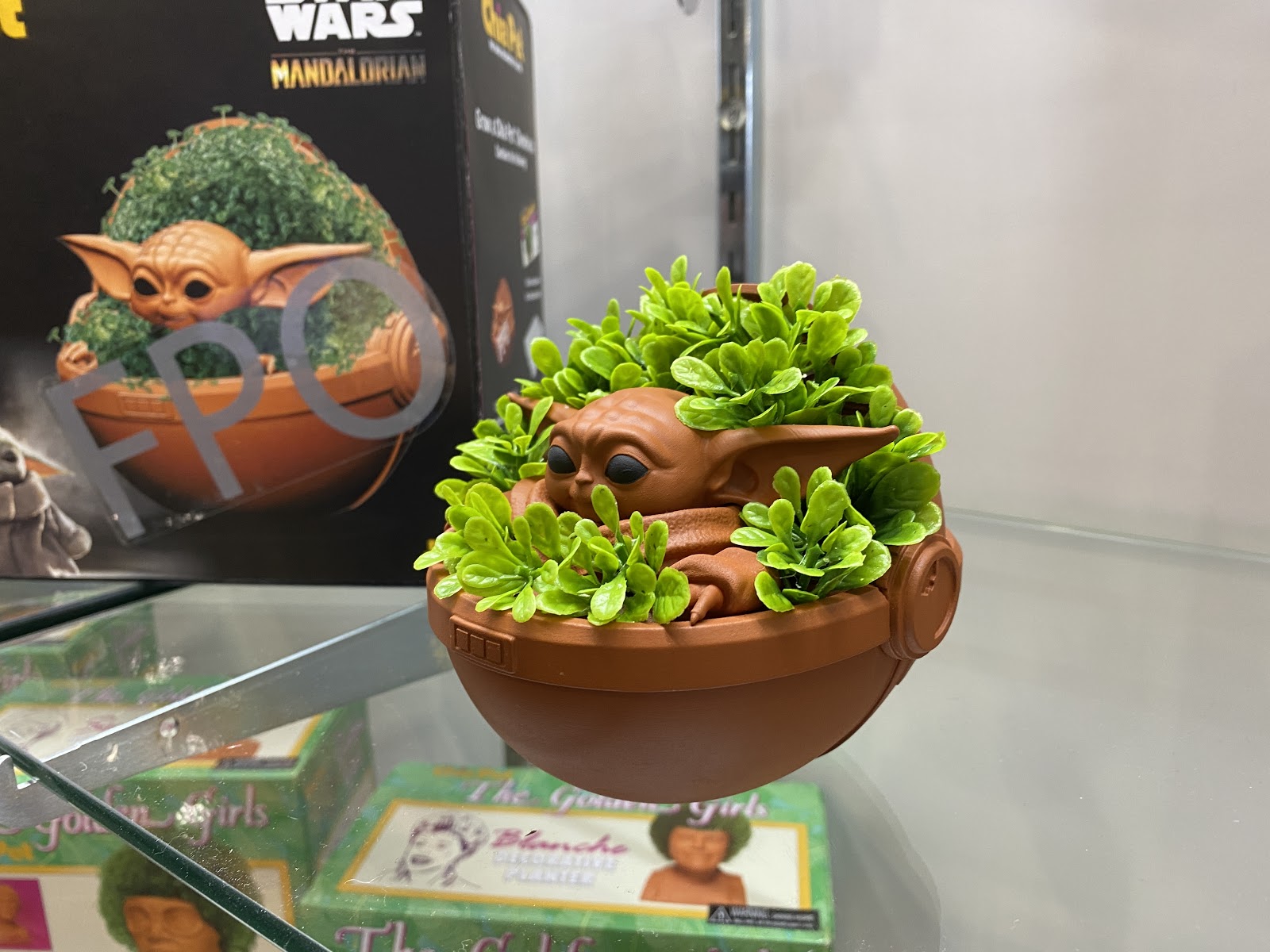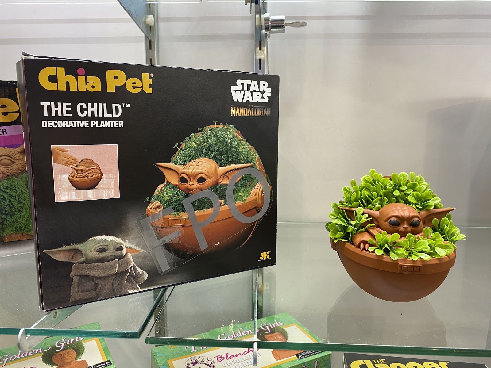 We’ll start with the Chia Pet release of “The Child” from The Mandalorian, which went viral when we shared an image of him on all of our social media accounts. He’s so cute in his pram where chia seeds will grow green plants around him. Raise your hand if you’re getting one.