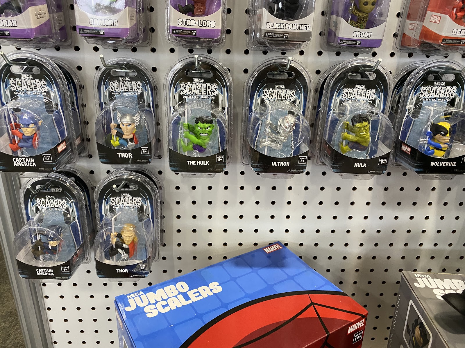Neca Scalers are figures that hang onto wired chords. They’re available in 2-packs with ear buds and individually. They can clip onto any chord and come in a variety of Marvel characters and Alien. There’s also a Spider-Man Jumbo Scalers that could hang onto a larger circular item in a home or apartment.