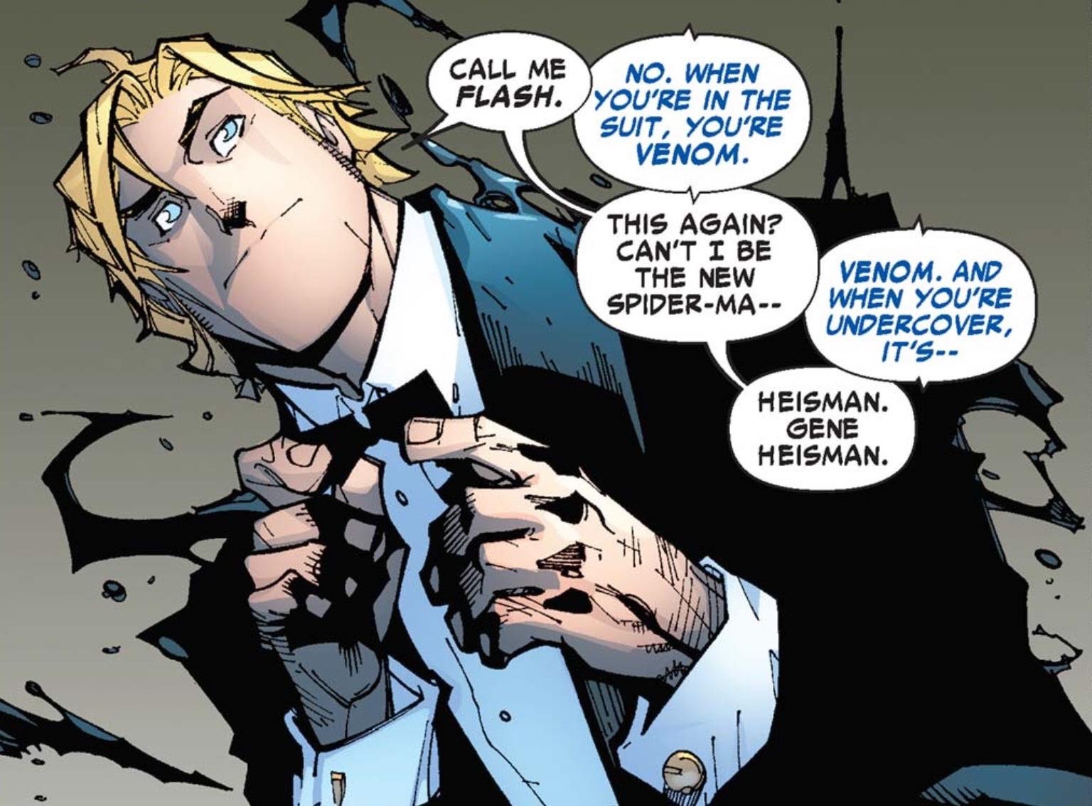 Yes, that Flash Thompson. Peter’s “friend” from Spider-Man: Homecoming and Spider-Man: Far From Home eventually bonds with the Venom symbiote. Well, at least the comic book version of the character does.
