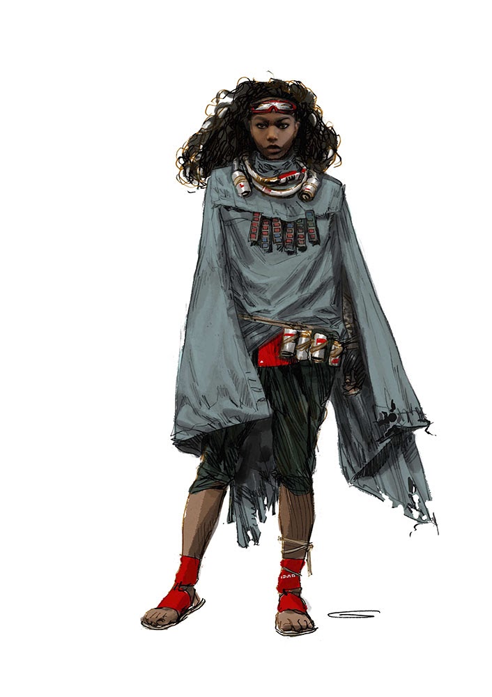 Speaking of Star Wars: The Last Jedi, this book devotes fifteen pages to the filling in of gaps omitted from that film’s Art of edition-- a number of key moments from the second half of the movie left out to avoid the leakage of spoiler material (up to and including the burning of Luke Skywalker’s Jedi temple, Leia’s dramatic Force-fueled space flight, the climactic face-off in Snoke’s throne room, and the final showdown between Kylo Ren and Luke’s Force projection on the planet Crait). And that brings us to The Rise of Skywalker, represented here in narrative chronology beginning with Resistance and First Order characters’ costume designs and sequentially flowing through the events of the story, planet by planet. We see early versions of the Aki-Aki creatures on Pasaana, the lovable single-wheeled droid D-O, and the denizens of the cantina on Kijimi.