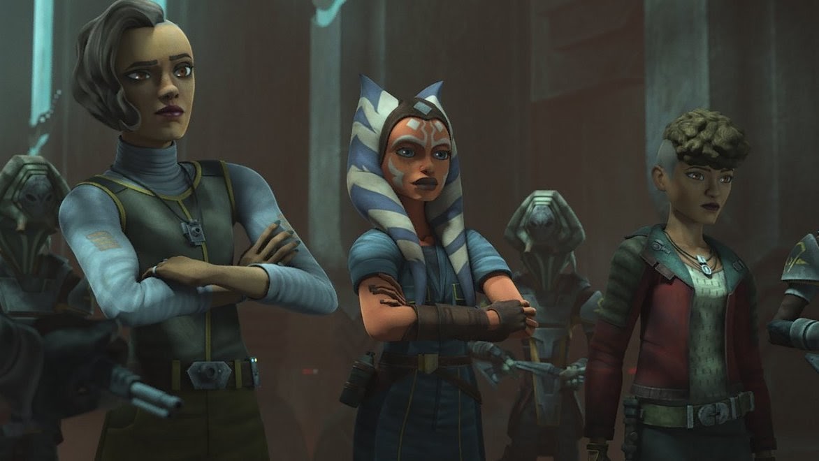 Hello and welcome to Laughing Place’s weekly recap of the seventh and final season of Lucasfilm Animation’s Star Wars: The Clone Wars on Disney+. This week’s episode, entitled “Together Again,” picks up right where the previous installment left off, with Ahsoka Tano (voiced by Ashley Eckstein) still imprisoned by the Pyke Syndicate along with her new frenemies Trace Martez (Brigitte Kali Canales) and her sister Rafa (Elizabeth Rodriguez).