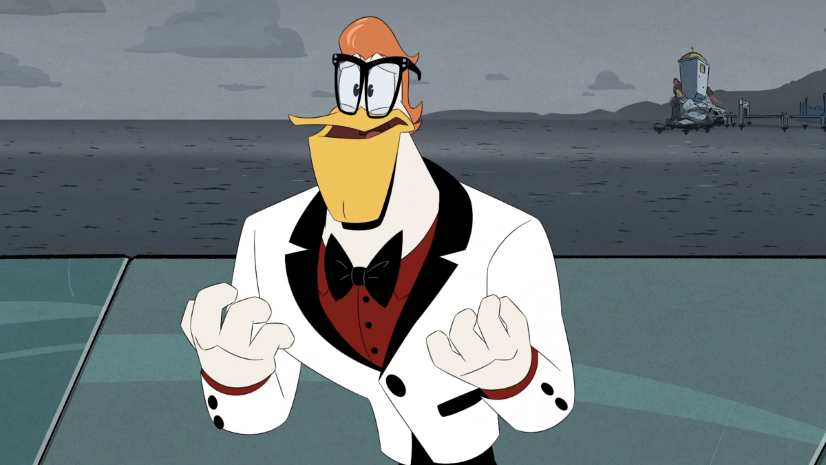 “Double-O-Duck in You Only Crash Twice!” leans into its 007 influences hard, right down to the Shirley Bassey-inspired theme song sung by Dewey at the top and by a more accomplished vocalist over the episode’s end credits, but it’s also another direct reference an installment of the 1980s DuckTales series entitled “Double-O-Duck” and its villainous F.O.W.L. cadre that later carried over into the fellow Disney Afternoon series Darkwing Duck.