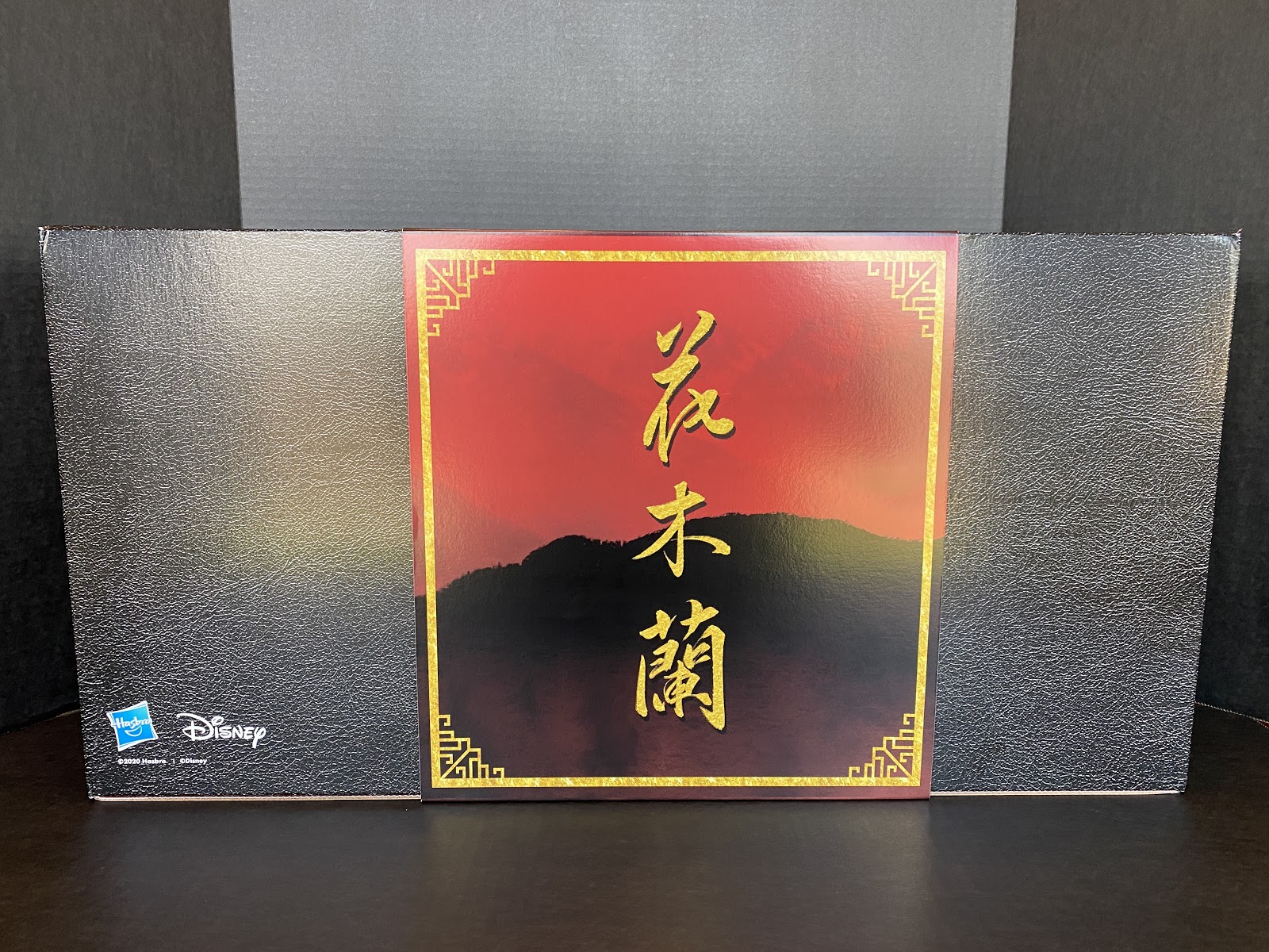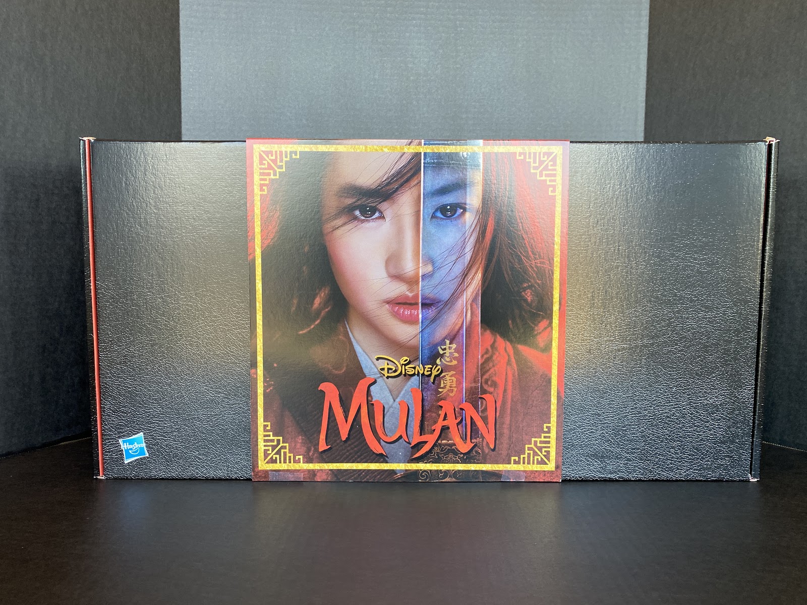 Our friends at Hasbro sent us a big box of products from Disney’s live-action adaptation of Mulan, coming to theaters July 24th. The box included an eye-catching slipcover with poster art from the film on one side and the Chinese characters for “Loyal, Brave, True” on the back, which are on Mulan’s sword in the film and become her motto on her journey.