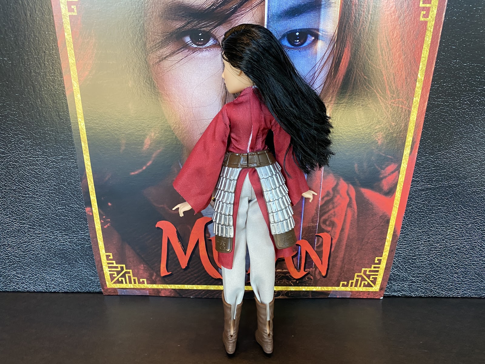 The Mulan Fashion Doll features Mulan in her warrior gear from the film after she has revealed herself to be a woman to the army. She has her hair down and the bottom half of her armor, which is removable. This doll retails for $14.99.