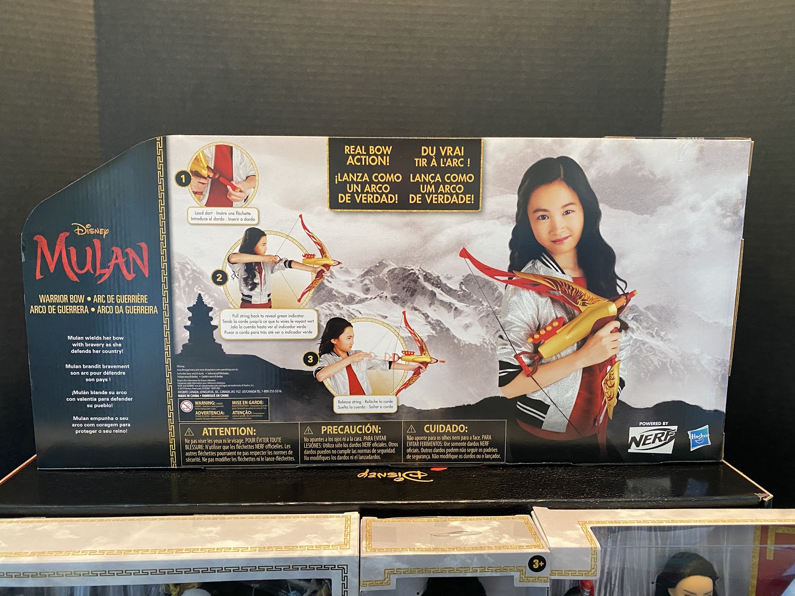 The artwork continued on the inside of the box, which included three different Mulan dolls and a Nerf Warrior Bow.
