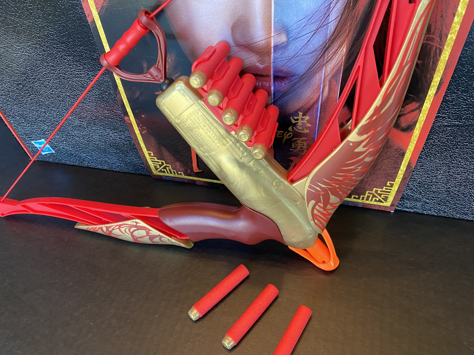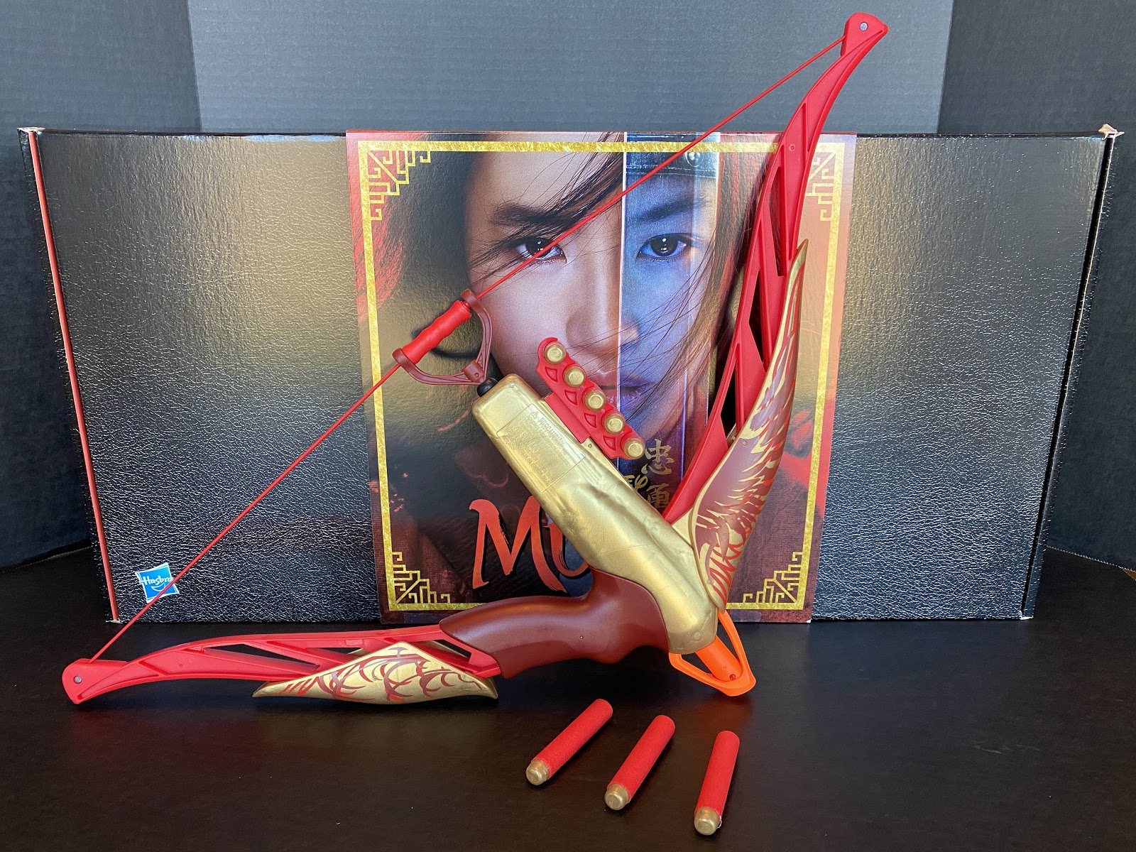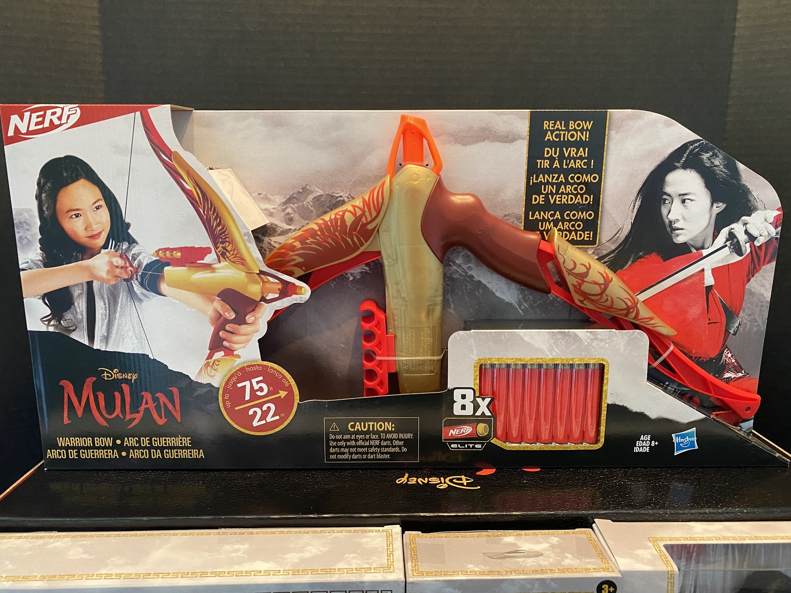 The Mulan Warrior Bow incorporates phoenix design elements, bringing Mulan’s guardian from the film into the role play toy. It includes eight darts that can shoot up to 75-feet. It works like a real bow, requiring the shooter to pull a string back and release to shoot the dart. This toy retails for $29.99.