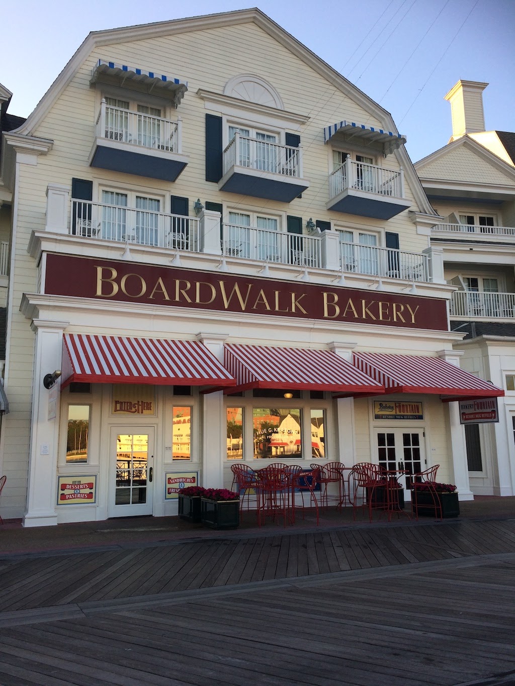 “Of all the places you could stop along the boardwalk, I think the BoardWalk Bakery offers the best views of Crescent Lake and its neighboring resorts. Once upon a time, I was a Cast Member at this very bakery. Sometimes walking those backstage halls, I would sing Sunset Boulevard to myself: ‘The atmosphere as thrilling here as always. Feel the early morning madness. Feel the magic in the making,’ which perfectly summed up every day. Whether watching the sunrise from behind the glass, jogging after a rare late night shift, heading back from EPCOT or Hollywood Studios at sunset, or visiting as a guest, there is just so much I love about this resort. To this day, I still feel giddy each time I set foot on those wooden slats.”