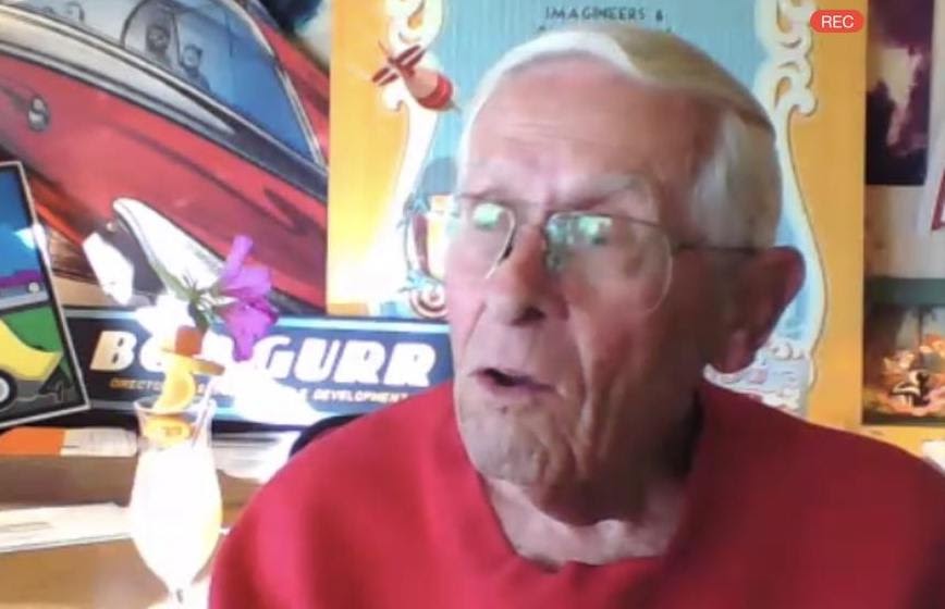 The Walt Disney Family Museum just wrapped up their first Happily Ever After Hour virtual event with Disney Legend Bob Gurr. He answered questions from the hosts of the WDFM Podcast before taking questions from fans tuning in. There were over a hundred questions in the queue with only an hour to answer them and he couldn’t get to all of them, but with a GurrTiki in hand, Bob Gurr gave engaging and insightful answers. Here are ten things we learned from the virtual event.