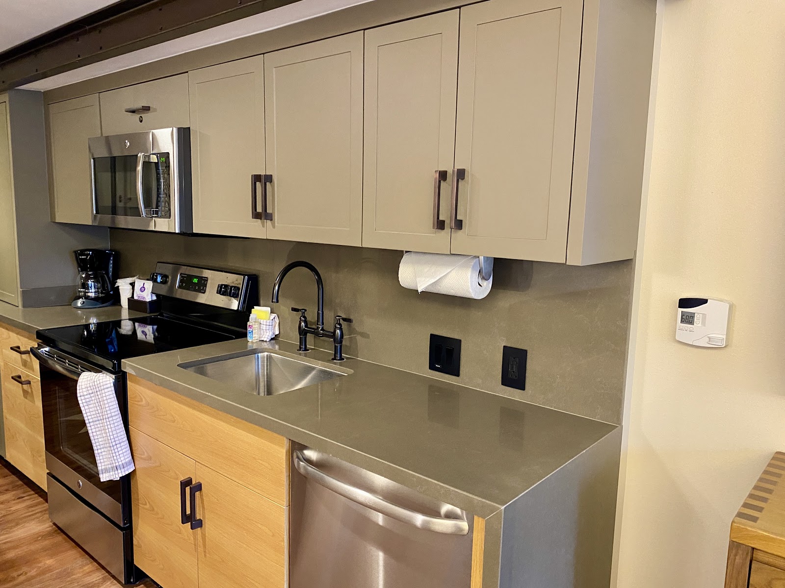 Keeping with the theme of getting away from the hustle and bustle, the sitting area is perfect for an afternoon in or a gathering place for a dinner made just feet away in the full kitchen.