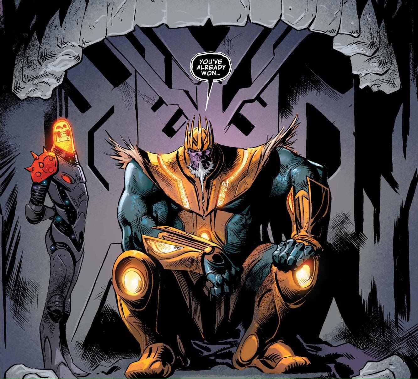 That’s not what this story is about though. Not really. It’s not about watching Thano win. In this story, millions of years in the future, Thanos has already won. The Mad Titan is summoned to his future to see the results of a multiverse he has already defeated. And who could simply summon a being as powerful as Thanos? Well, only Thanos himself.