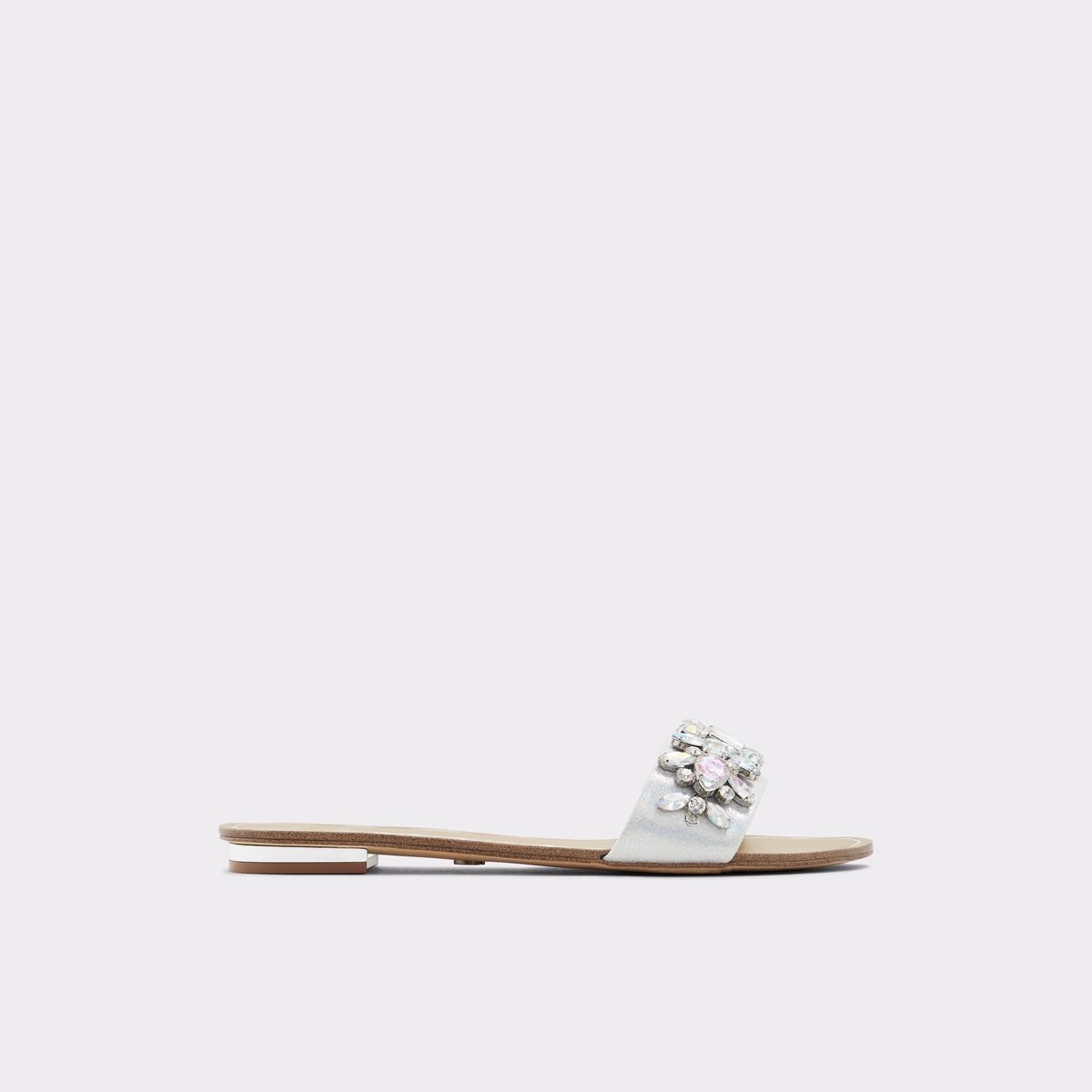 “Channel Cinderella all day, every day in these playful, bejewelled slip-on sandals. Charming and effortless, so you can stay light on your feet.” Available in White and Bright Multi.