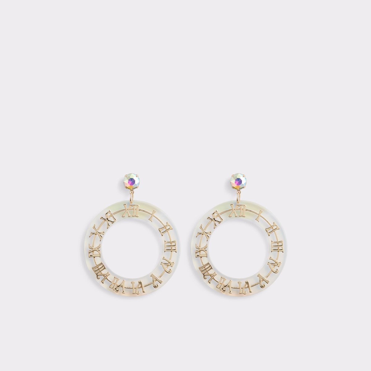 “Cinderella knew a thing or two about being on time- these clock-inspired earrings feature golden roman numerals with trendy transparent detailings. Count down to midnight with a little fashion and a lot of personality.”
