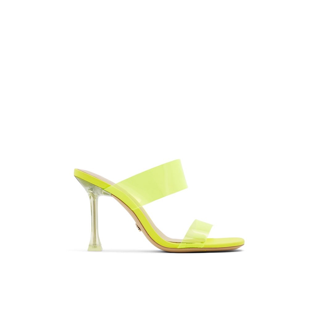 “Paying homage to Cinderella's stepsisters' coordinated ball gowns, our two-strap mules are inspired by the bright colors and bold attitudes that made these characters so memorable. Not to mention the trending combination of lucite flared heels and square toes in playful shades of neon.” Available in Pink, Bright Green, and Clear.
