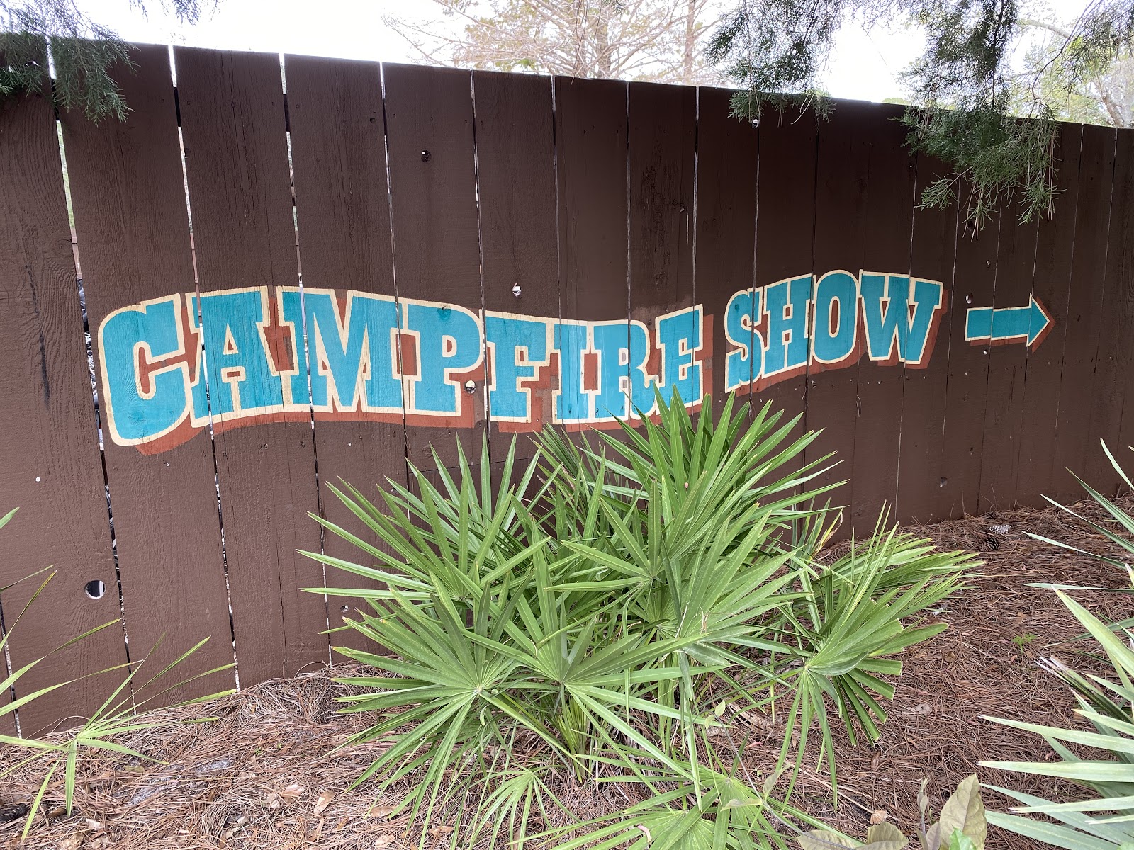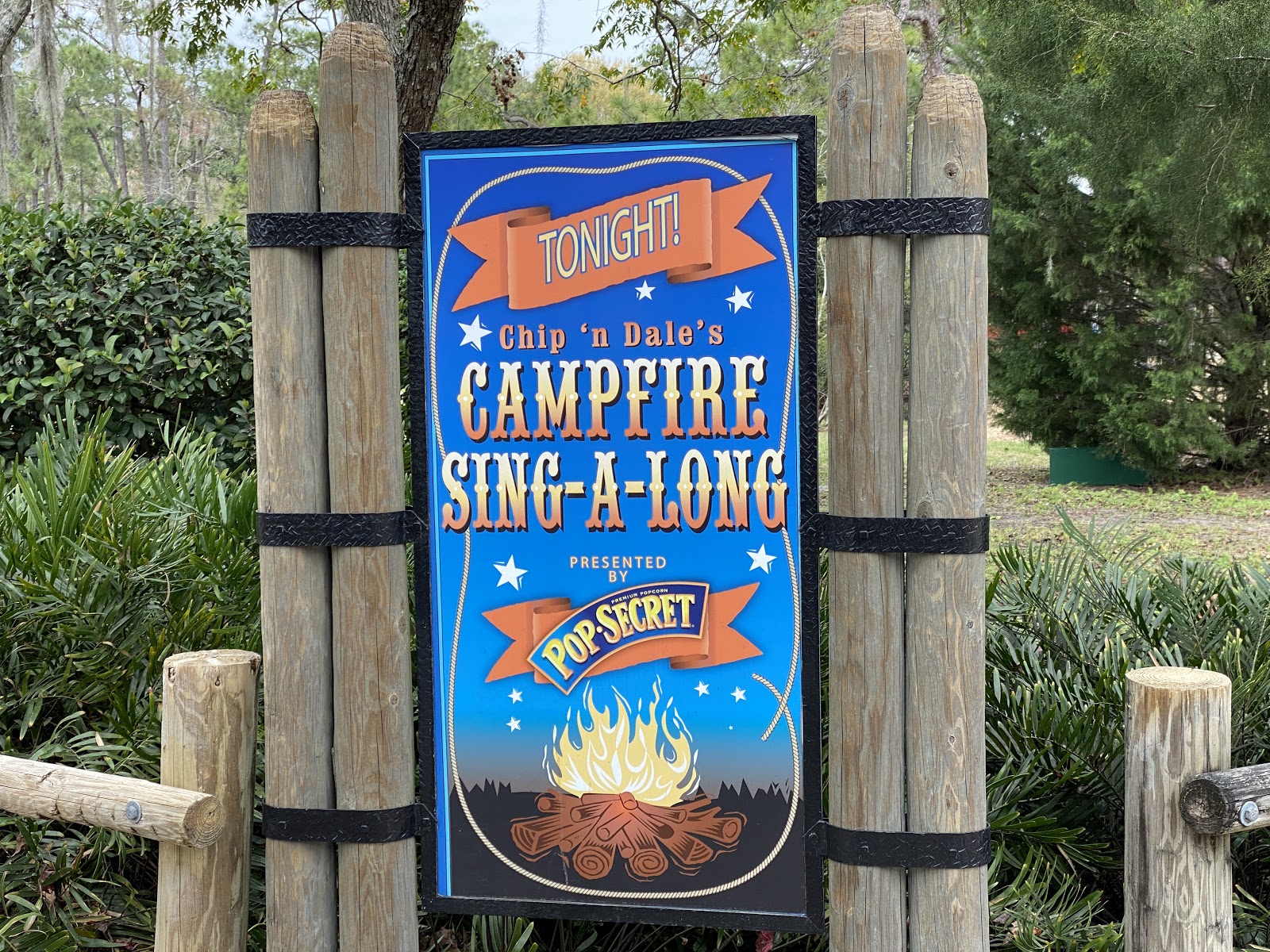 While most Guests will say the Hoop-Dee-Doo Musical Revue is the highlight of a night at the Fort Wilderness Resort, I actually love the Chip & Dale Campfire Sing-a-long. This nightly activity offers Guests the opportunity to roast marshmallows on one of several fire pits. If you didn’t bring your own, s’mores kits are available for purchase. Chip and Dale are on hand for an old fashioned sing-a-long, which precedes a movie under the stars in an outdoor amphitheater with bleacher seats, like a camping version of a drive-in movie.
