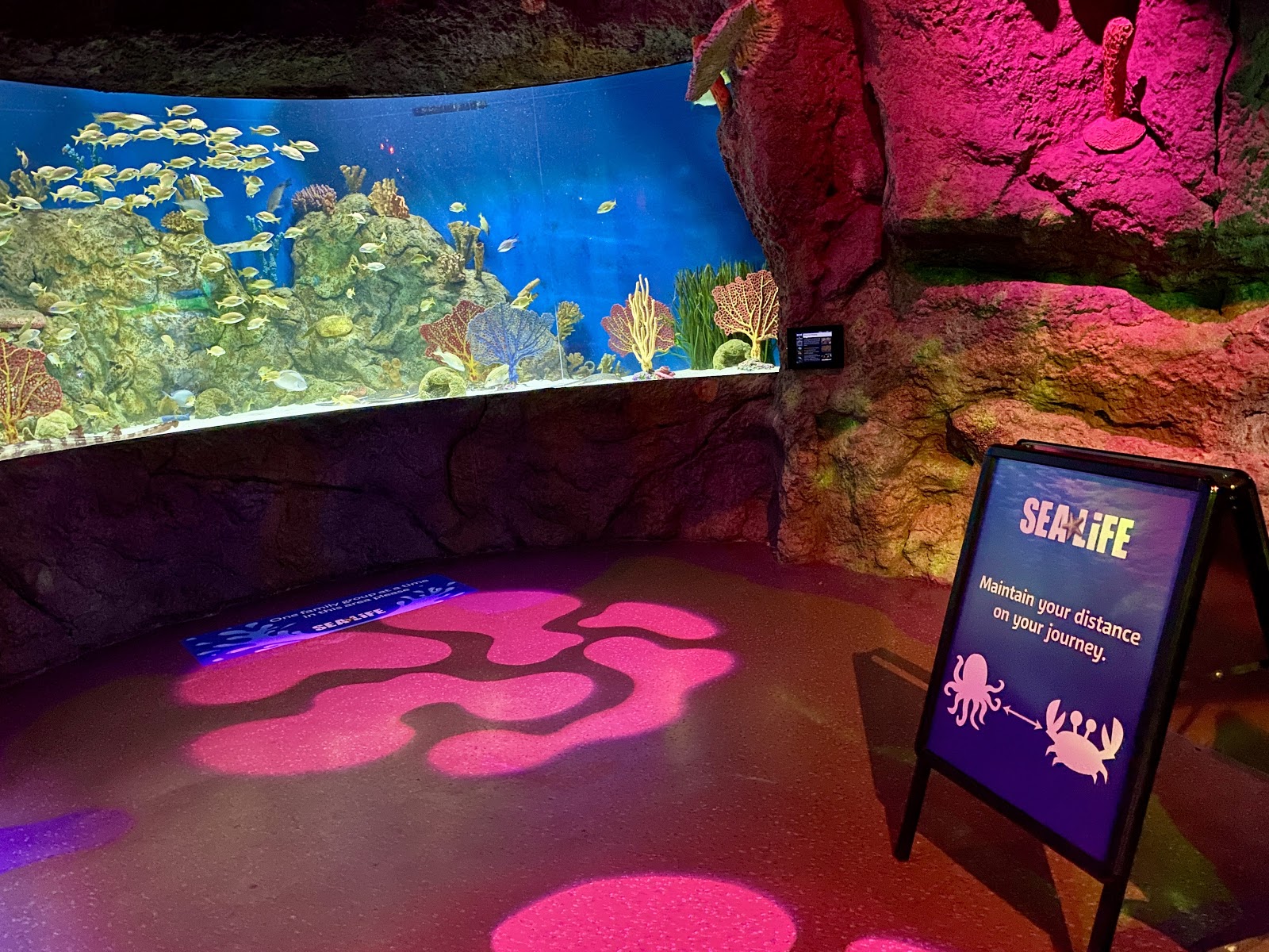 Having visited Sea Life before, I noticed that some of the interactive activities were hidden with fishing nets (to keep in theme) or shut down to minimize surface touching. But, on the whole, they did an excellent job of reopening with very minimal impact to guests.
