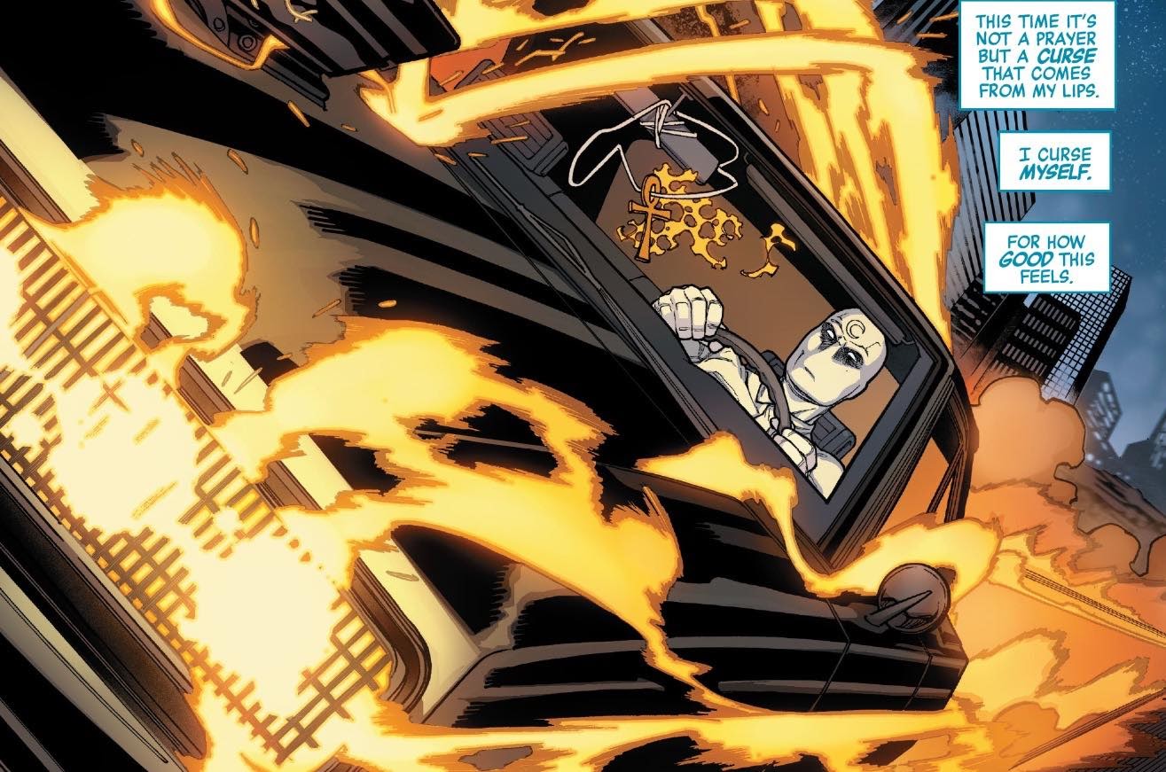 It appears the story arc will see a lot more of both as Moony is apparently still following the orders of the bird-like Egyptian god, and has also been granted some serious power. I mean, it’s not every day the Ghost Rider gets his care stolen.