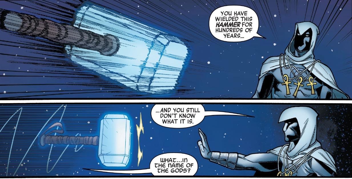 That sequence sets the tone for this entire issue, which sees Moon Knight attack hero after hero in an attempt to claim their powers for the Moon God Khonshu. We see him come face to face wit Doctor Strange, Black Panther and even Thor.