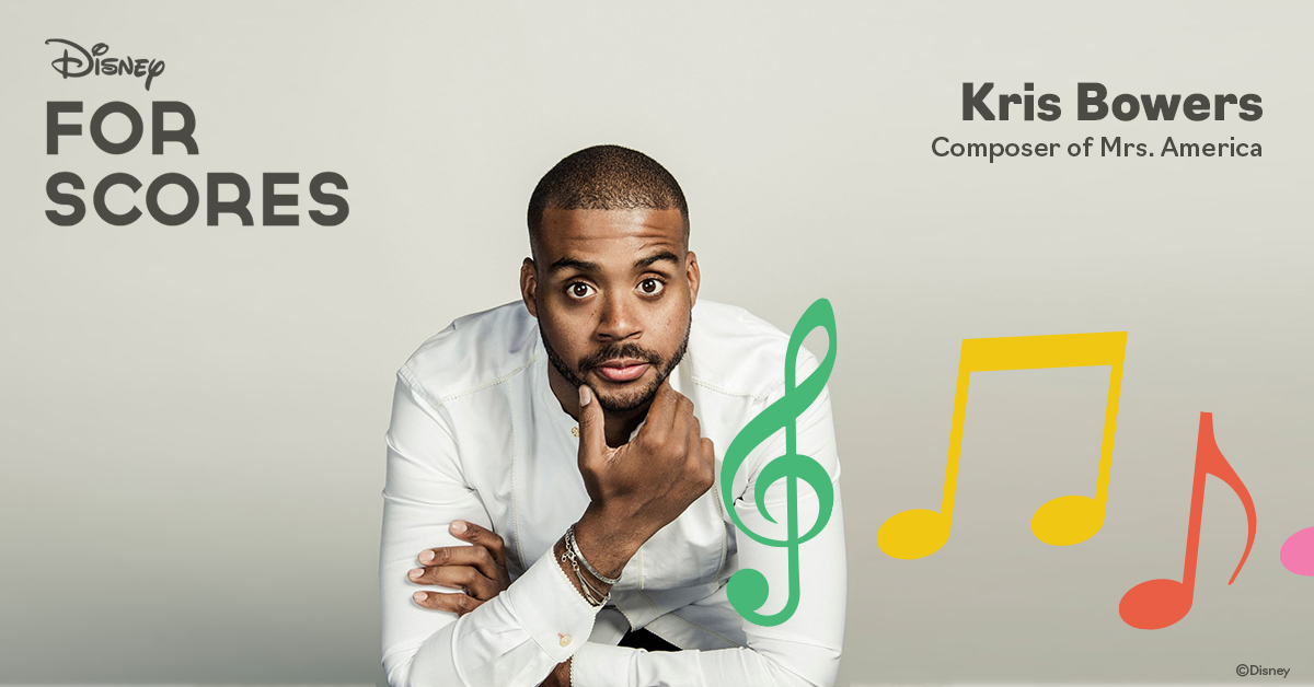 The eleventh episode of Disney’s For Scores podcast hosted by Jon Burlinggame featured composer Kris Bowers, who recently scored the FX on Hulu series Mrs. America. During the episode, listeners discover how he got involved with the project and how the global pandemic impacted his ability to complete it. But first, as always, there’s a little background on the guest.