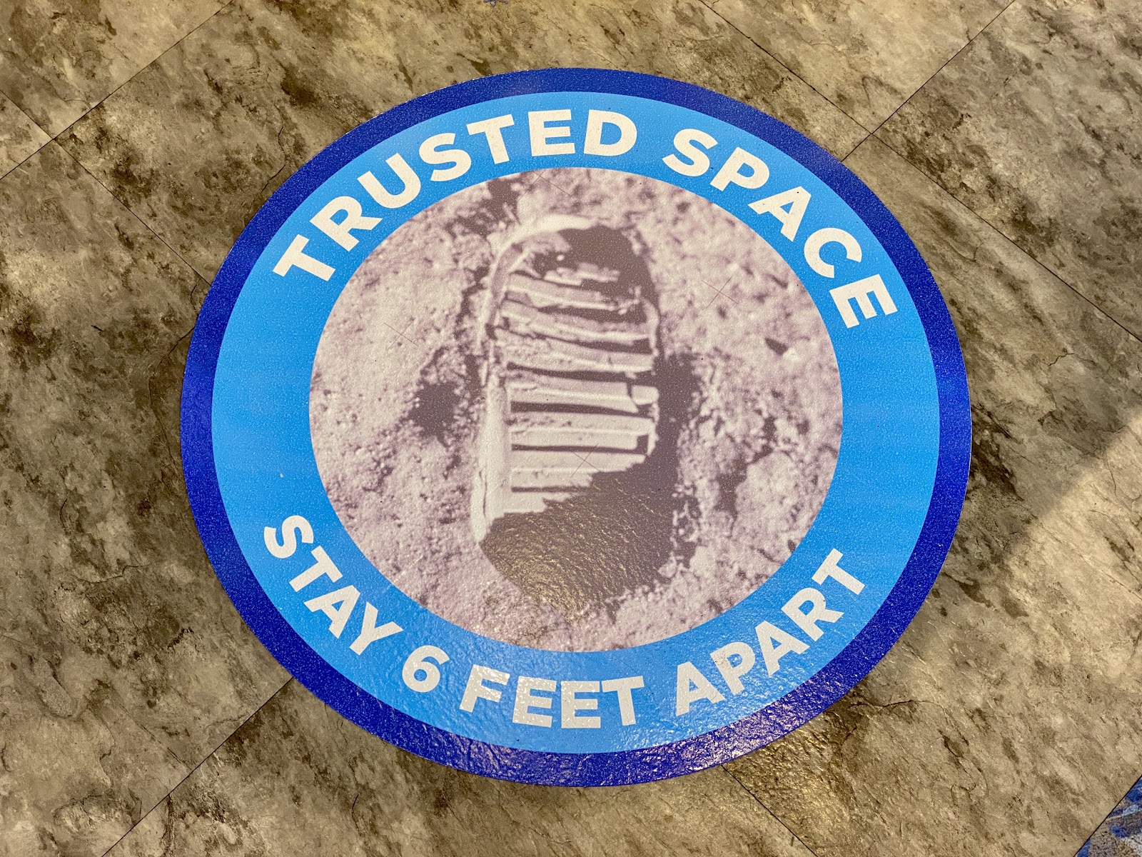 Once parked, guests were met with signs advising of the Trusted Space Program that included the requirement for face coverings, a temperature check prior to entering, and of course advisements about social distancing.