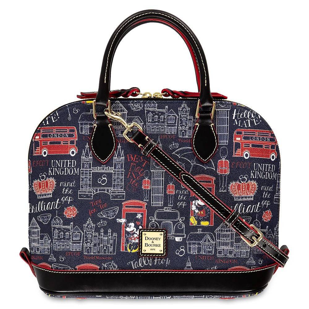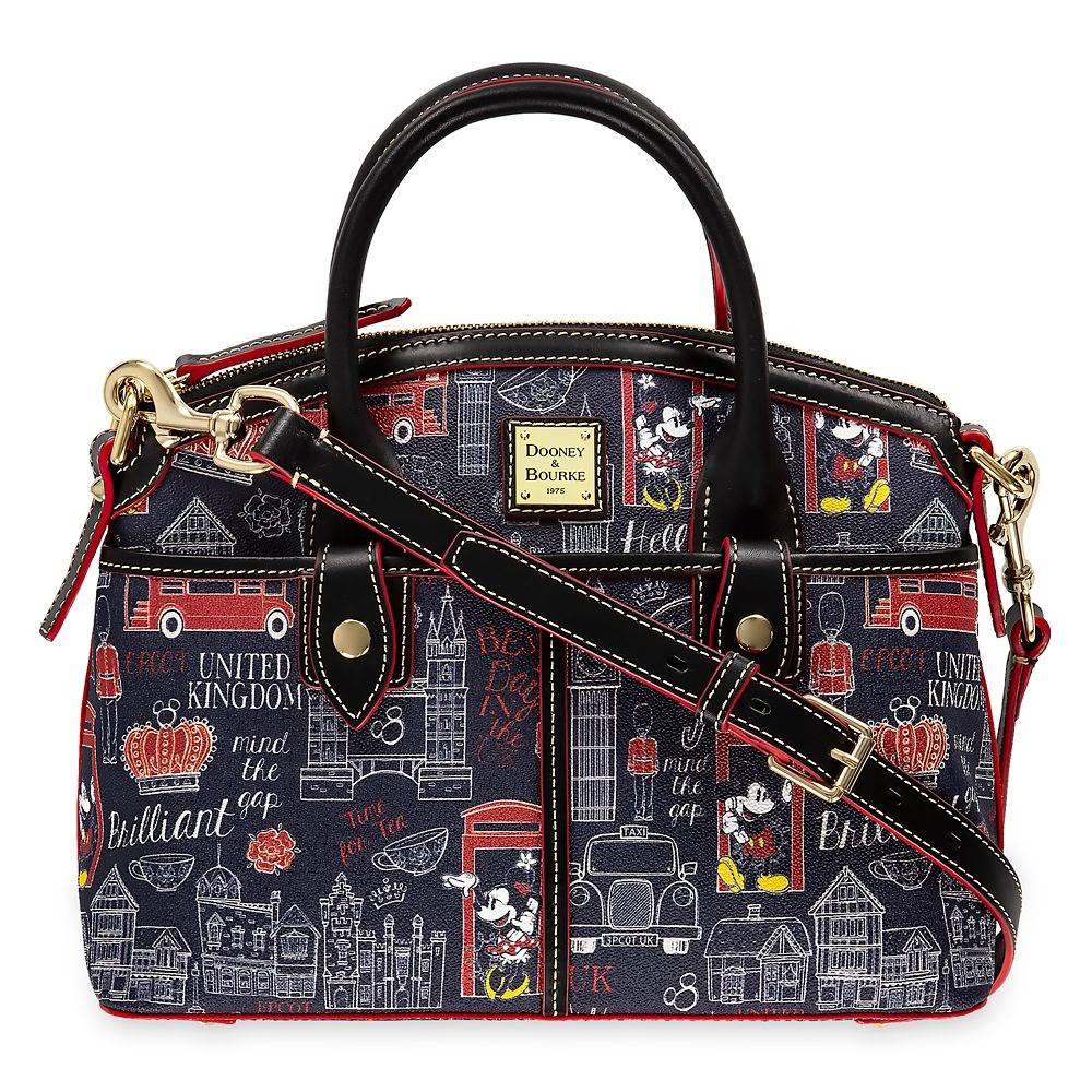 “Join Mickey and Minnie on a whirlwind tour of the United Kingdom with this compact satchel from Dooney & Bourke. Inspired by the United Kingdom pavilion in EPCOT’s World Showcase, it features an allover pattern including Big Ben, double-decker buses, and more.”