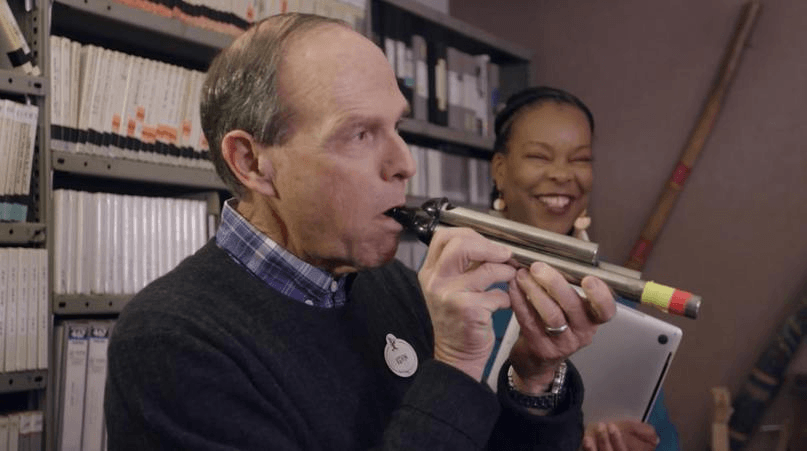 Kevin Rafferty, Creative Director, takes us inside Walt Disney Imagineering in Glendale, CA, for a rare look into the art-filled hallways. The main area, however, looks shockingly similar to any office space with barren cubicles on an open floor. It’s a very touching segment as Rafferty begins to tear up when juxtaposing one of his earliest memories, a decoration in his childhood bedroom of Disney characters on a train, with his final attraction of his career where Mickey stars in his first ride which also features a train. Kevin Rafferty and Senior Producer Charita Carter meet with Media Designer Joe Herrington to put a few final touches on the attraction’s sound design and Rafferty makes a last-minute change to the script for a moment where a Cast Member talks back to Goofy. The train’s whistle uses Jimmy MacDonald’s original device, which was used on Steamboat Willie.