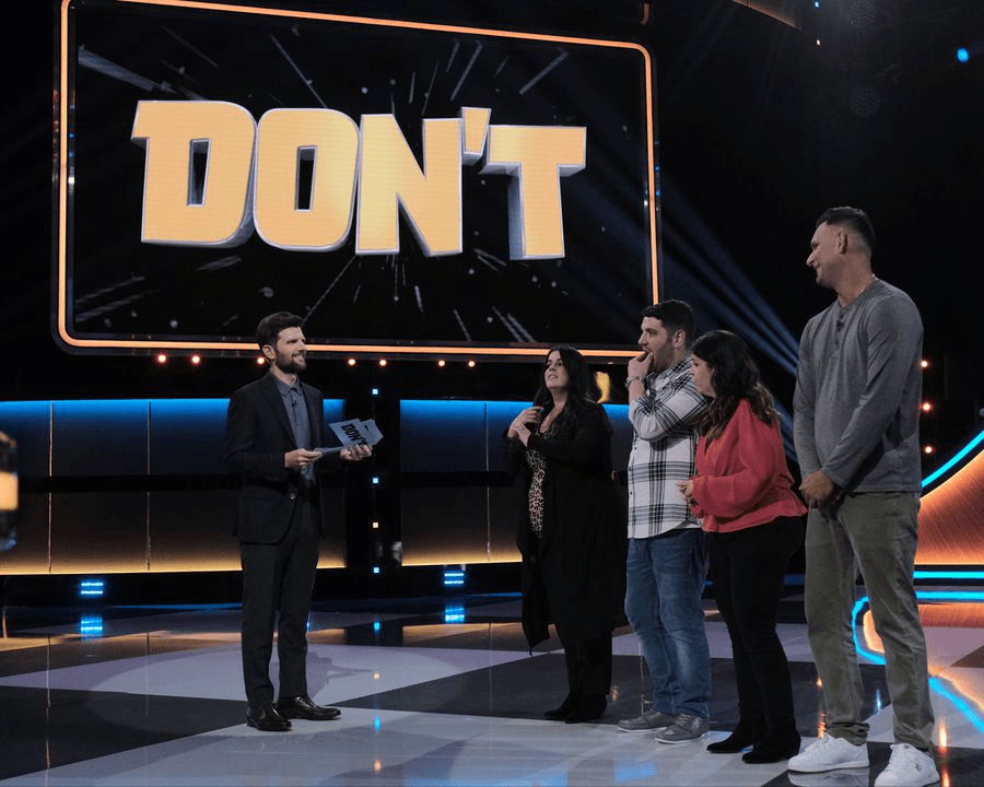 “Don’t Use Fowl Language:” That’s not a typo, it’s a bird joke. The team gathers around a giant bird’s nest with an egg-shaped button as images of celebrities appear on the screen. They take turns saying the celebrity’s name out loud, pushing the button if the celebrity’s name includes a species of bird. The other players can’t give them the name, but they can try to give them a hint.