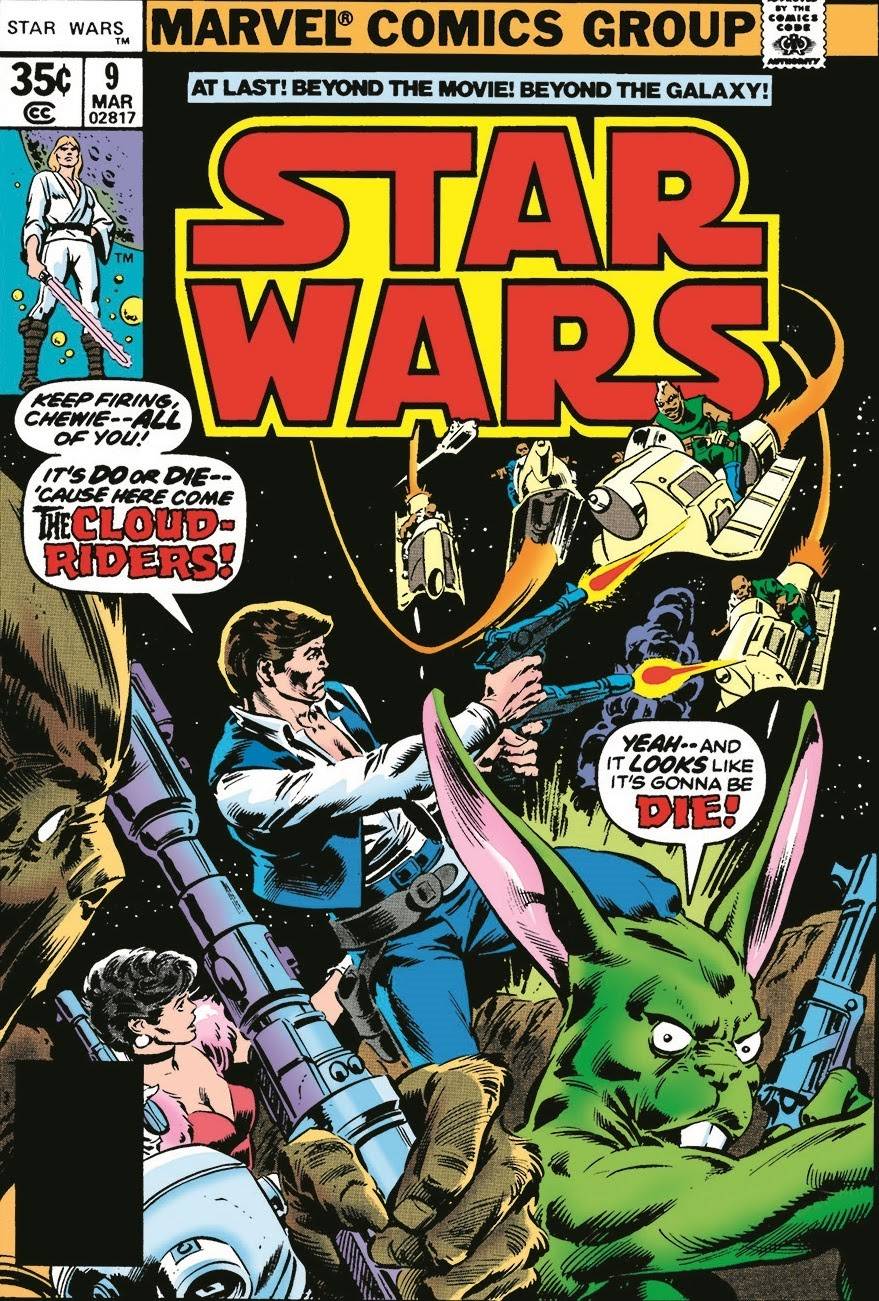 Hello and welcome to Laughing Place’s ongoing analysis of Marvel’s original Star Wars comic book. Issue #9 was released on December 13, 1977, making it the final issue to come out during the year Star Wars first debuted in movie theaters. This issue continues the Seven Samurai-inspired story that has been playing out since the adaptation of the movie ended with issue #6. In the bullet-point list below, I’ll comb through issue #9 panel by panel and pick out any interesting oddities or tidbits that jump out to me.