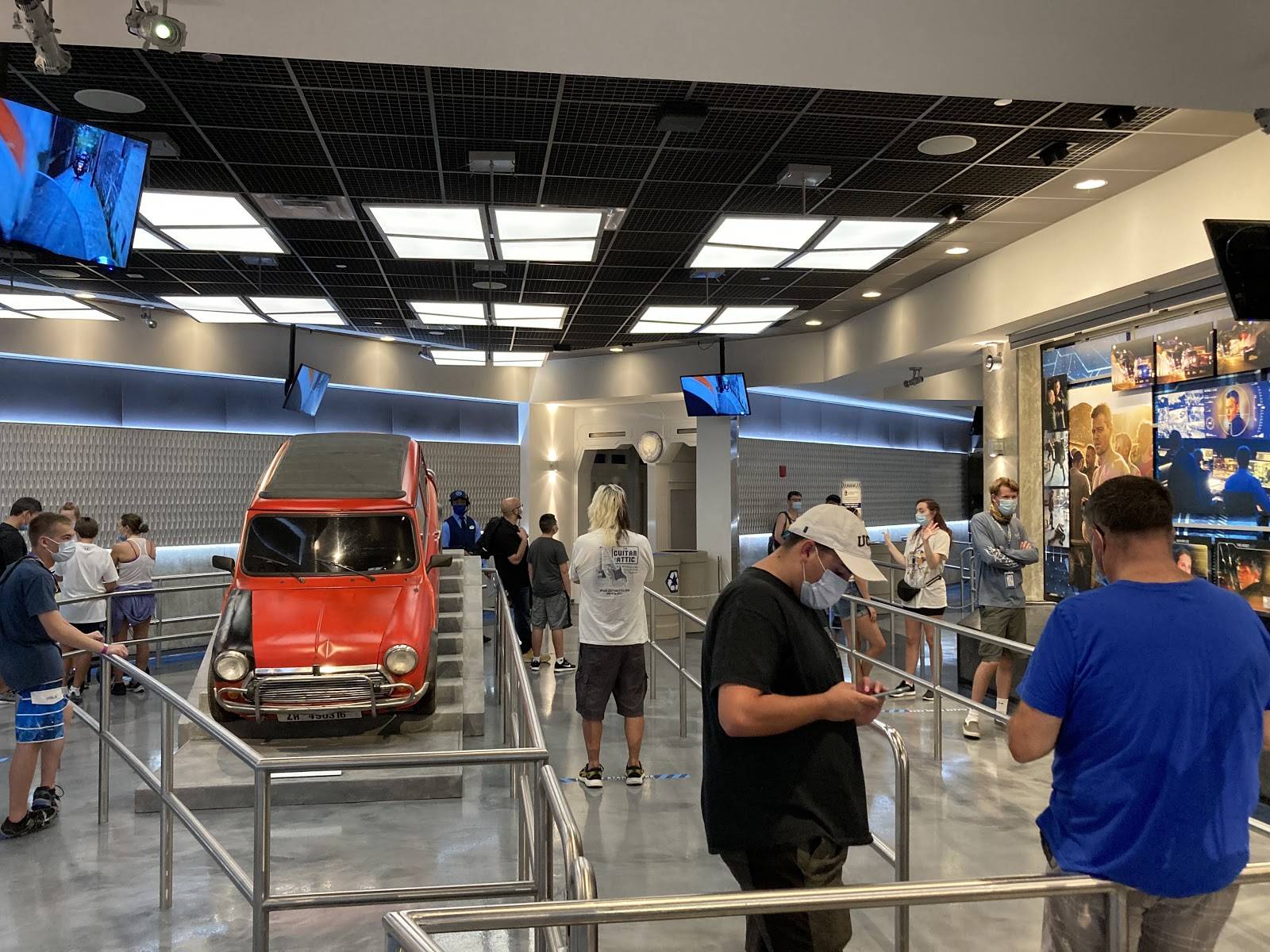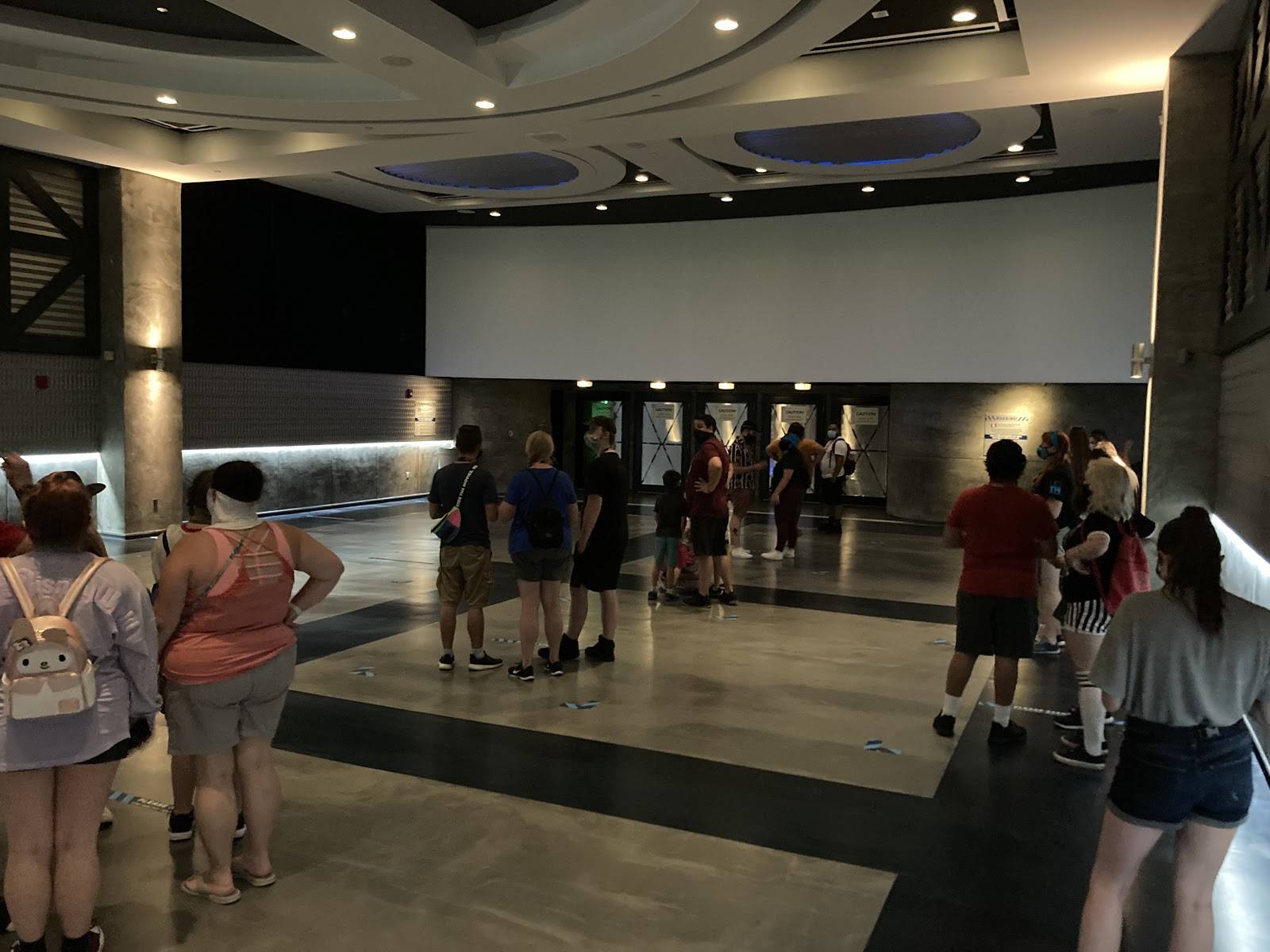 Guests are then directed into a large room for a pre-show. Again, social distancing was being enforced here, both by markers on the floor and instructions from Team Members. A large screen plays a lengthy video before the doors open and guests are allowed into the theater. Personally, I thought the pre-show video dragged on a bit and it seemed as though many of the guests lost interest before it was over. However, given that the actual show is about 20 minutes long, at least there is something happening to entertain guests for most of that wait.