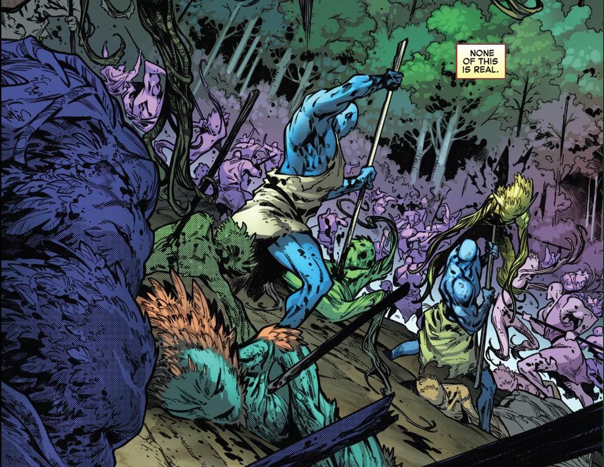 The Avengers arrive at the Cotati gardens on the moon, where that massacre took place millennia ago. After a brief altercation with a modified Kree sentry and a reunion with a revamped version of some old friends, Tony begins to feel at peace. As fans of Marvel Comics know though, peace never lasts very long.