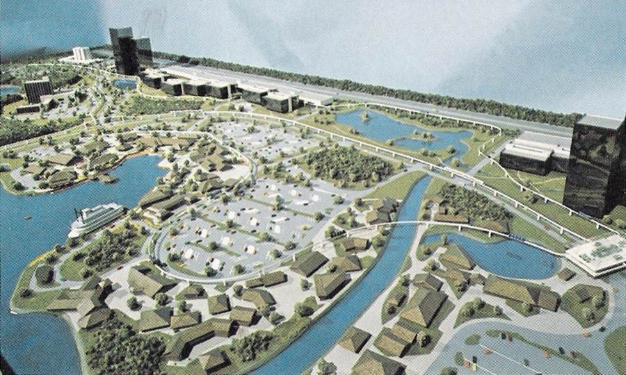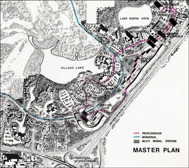 EPCOT the city as he saw it never came to be. Plans at the Walt Disney World Village (now Disney Springs) once also called for a monorail stop near where the Typhoon Lagoon entrance lies today, with a dedicated Peoplemover line that would take guests to the Shopping Village, Lake Buena Vista Golf Course, the hotels of Hotel Plaza Boulevard and the vacation homes that once stood where Disney’s Saratoga Springs Resort and Spa can be found today.
