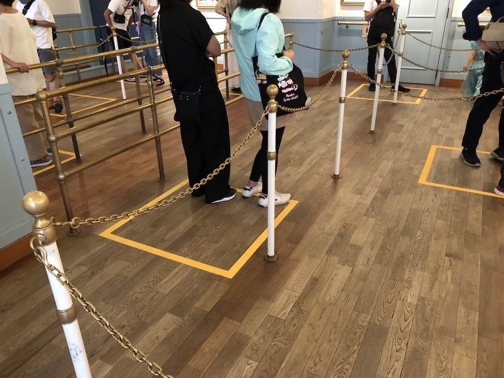 Over in American Waterfront, the queue for Toy Story Mania has been extended all the way outside and again has spatial markers.