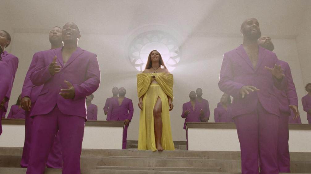 Black is King also includes some religious imagery, including a nod to the story of Moses where Beyoncé puts a baby in a basket and sends him down river during the song “OTHERSIDE,” which also features Beyoncé singing as a ghost like Mufasa communicating with Simba. A narration in the film adds religious context to the theme of “Circle of Life,” saying “To God we belong, to God we return.” The film also ends with a new version of “SPIRIT,” starting as an acapella moment with a choir, taking viewers to church before transitioning to parts of the music video released last year to promote the album.