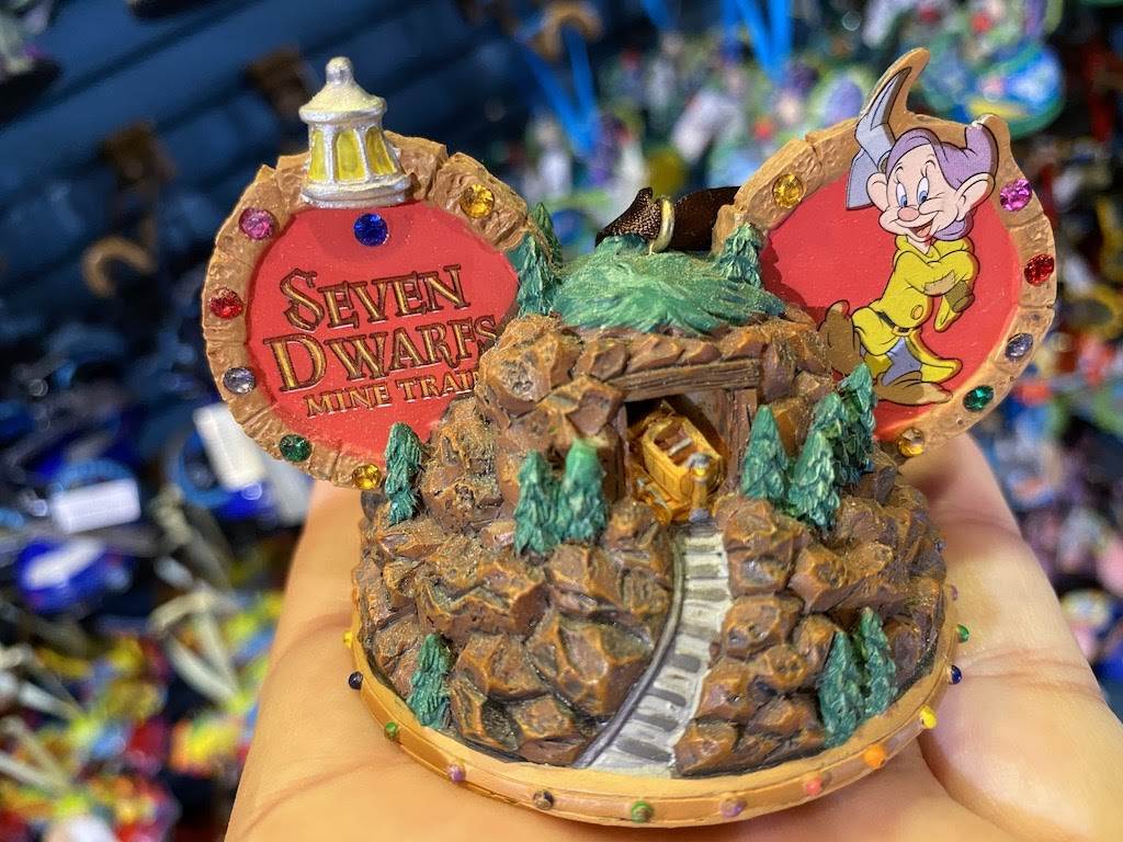Whistle while you work or decorate your Christmas tree. The Fantasyland attraction ornament features an axe-wielding Dopey off in search of gems. Speaking of gems, there’s a shiny sapphire on the bottom...if only it were real.