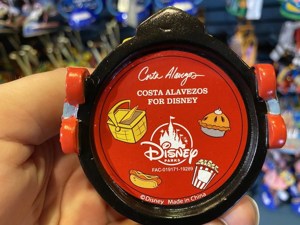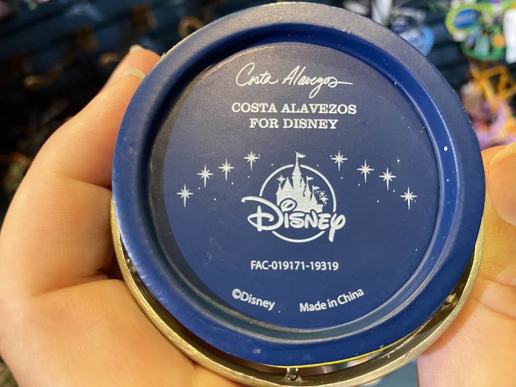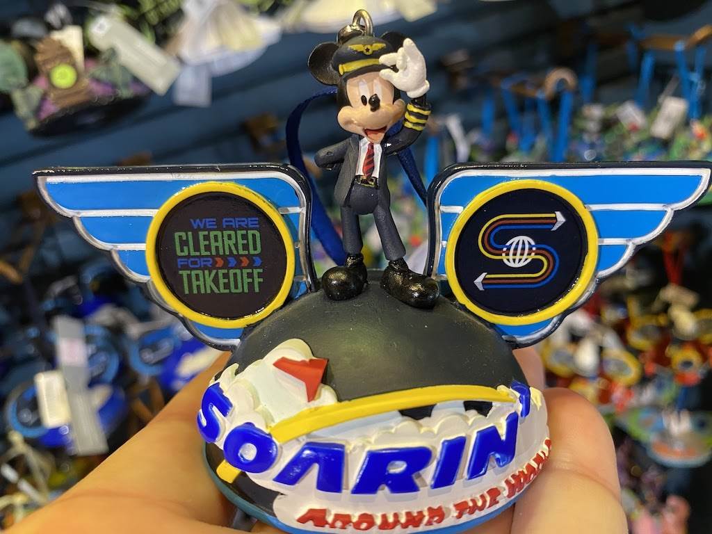 A very dapper Pilot Mickey stands atop this ornament that celebrates one of Disney’s best attractions. Mickey is flanked by big blue wings that are decorated with travel patches, while the pack of the figure features stamps from the many locations visited during the ride.
