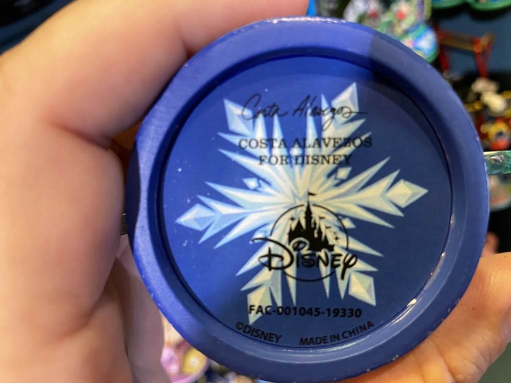 Elsa, Anna, and Olaf are all smiles on the front, while Sven and the snowgies have some glittery fun on the back. Along with the artist’s signature, the bottom of this figure is decorated with a brilliant snowflake.