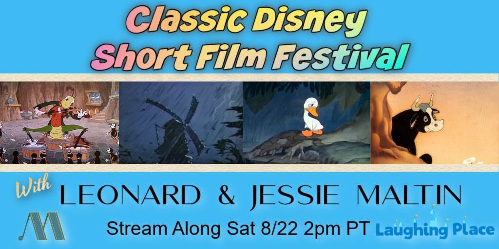 Laughing Place is pleased to announce our second virtual Classic Disney Short Film Festival on Saturday, August 22nd, at 2:00 pm PT with special guests Leonard and Jessie Maltin, hosts of the Maltin on Movies podcast!