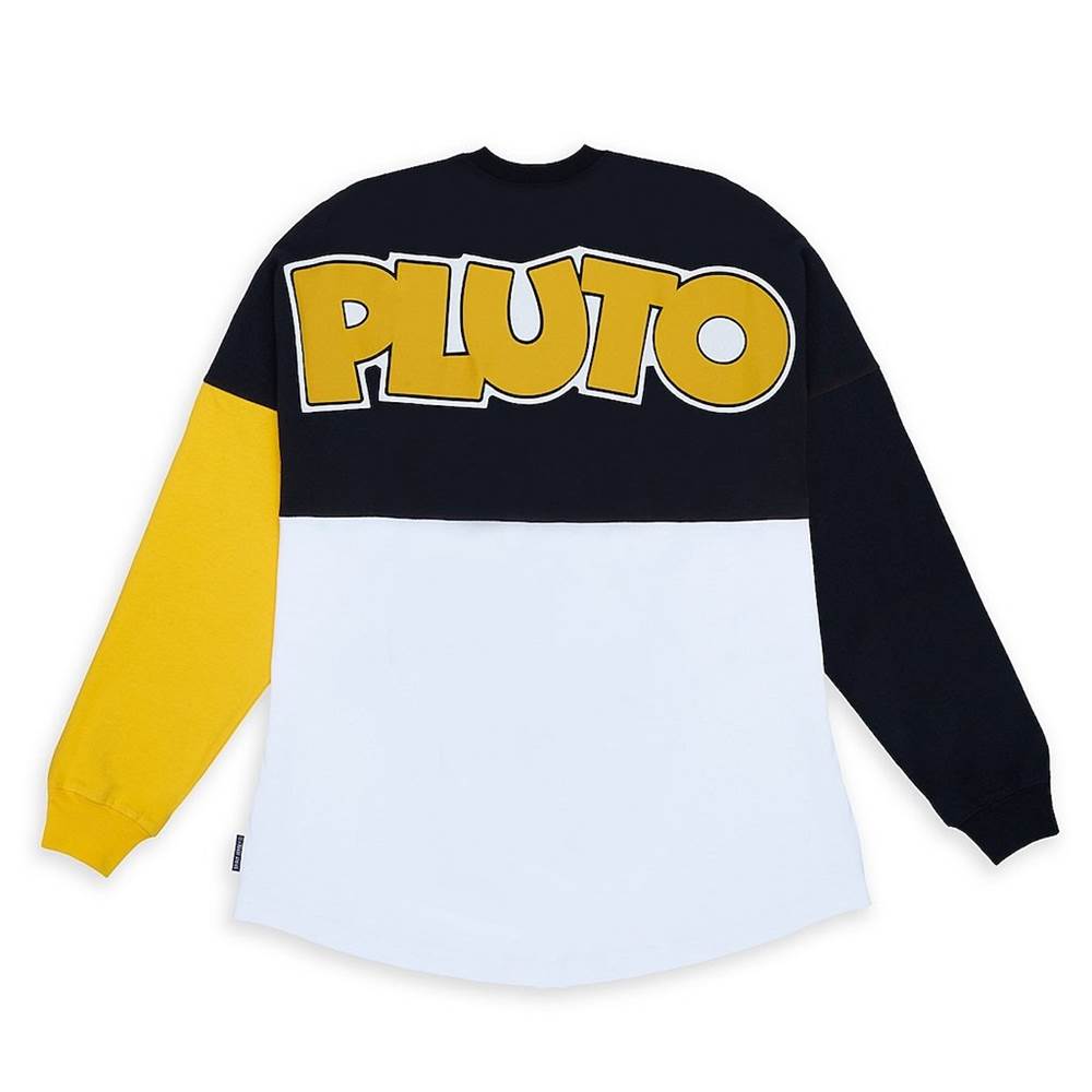 Pluto has taken over the front of this trendy Spirit Jersey! The oversized shirt features a bold color blocking pattern on both sides and the canine’s name in big letters across the back.