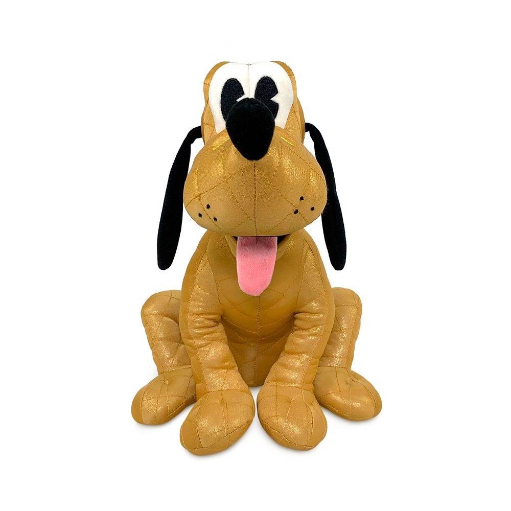 “Celebrate Pluto’s milestone anniversary with this fetching plush featuring golden sheen fur, collar, and commemorative patch.”