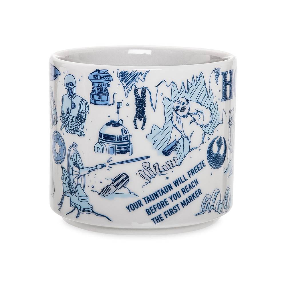 Let’s start at the beginning. The first mug shows the planet Hoth and features artwork of Darth Vader, Luke Skywalker, R2-D2, Tauntaun, AT-AT Walker, and more/