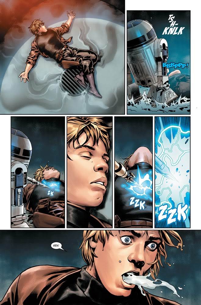 It’s implied that Luke learns Anakin Skywalker’s first name during this conversation, though I had always guessed he would have learned that at some point during his upbringing on Tatooine (he never insisted Uncle Owen or aunt Beru tell him his father’s full name?). Still, this chat is pretty enlightening as to what Verla has been up to over the past couple decades or so since we last saw her in the timeline, and a number of seeds are planted for things we already know need to happen-- the primary example being Luke’s acquisition of his new yellow-bladed lightsaber-- as seen on this issue’s cover.