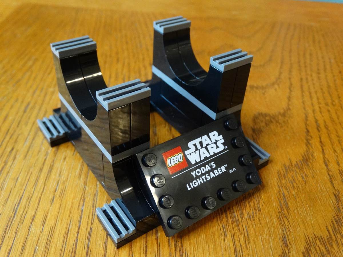 The LEGO Yoda’s Lightsaber set also includes a handy display stand, which is made up of two inverted arches that hold the saber’s cylindrical shape perfectly. The attached plaque features a printed LEGO Star Wars logo, as well as the “Yoda’s Lightsaber” text, just in case you forget which character this weapon belonged to. Another nice inclusion would have been a Yoda LEGO minifigure, but considering this was a free set, I really can’t complain too much about anything being lacking. Had I actually paid $15 or so to purchase this, though, I would have liked to see that extra bit of plastic packed in.