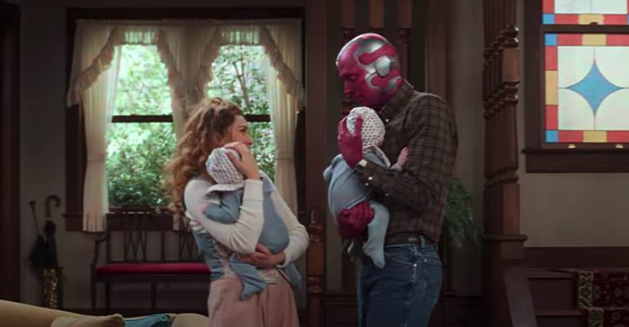 We then get a quick montage of shots that includes Wanda and Vision holding two babies. These are presumably their twin children who, in the comics, eventually go on to become the Young Avengers known as Wiccan and Speed.