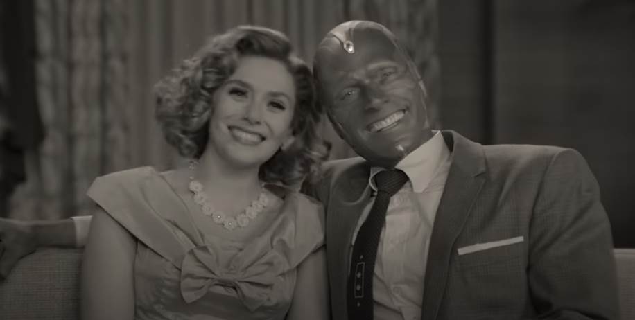 We get one more shot in black and white as Wanda and Vision, once again in their home, sit together on their couch.