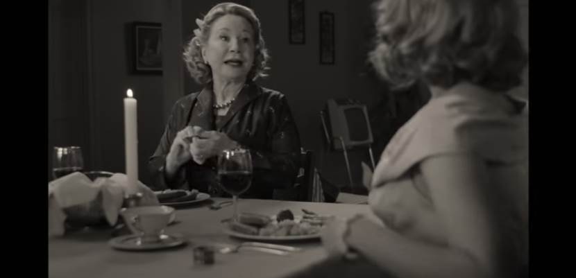 The aspect ratio of the trailer slowly transitions and the next shot fades from black and white to color while Wanda asks “Is this really happening?”