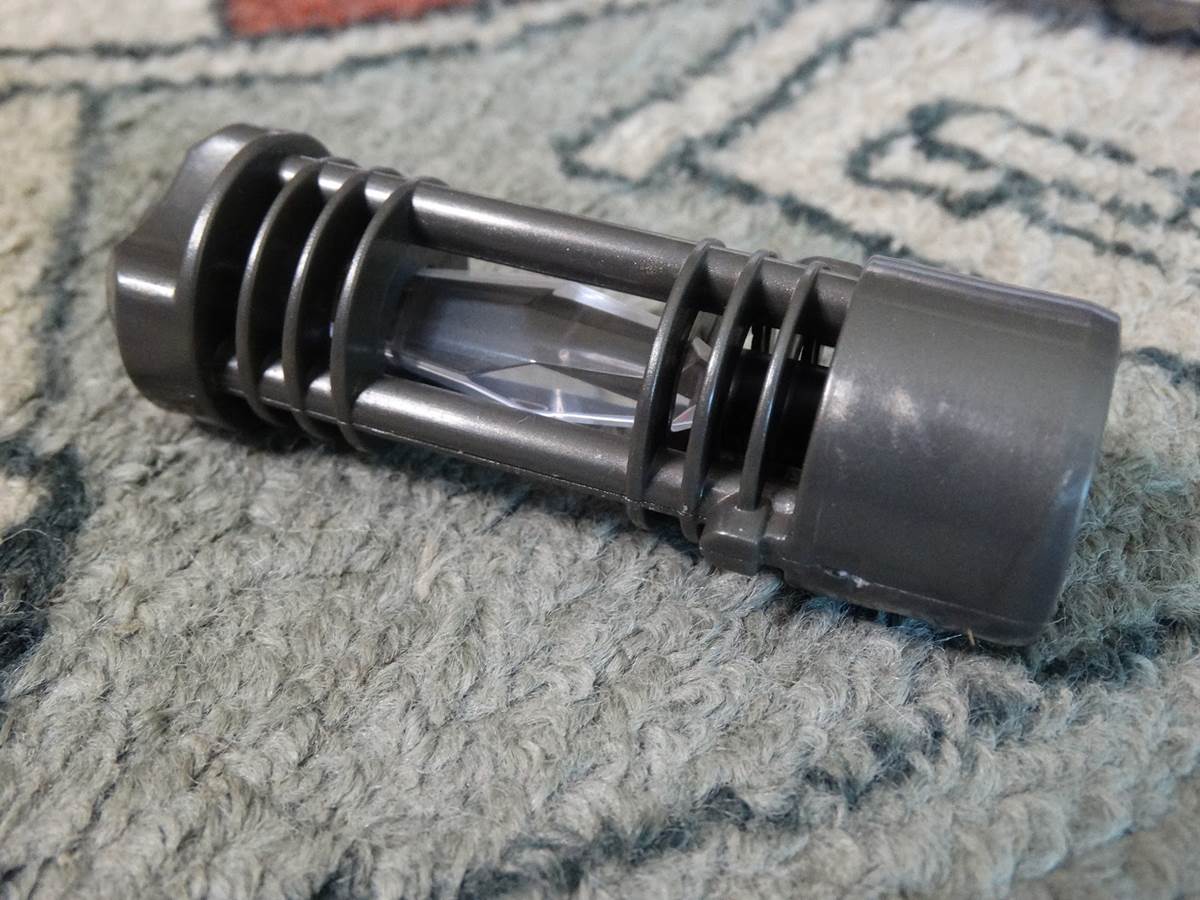 There’s also a removable transparent Kyber crystal that can glow when inserted into the hilt, and obviously the blade itself can be removed to make for a more display-friendly lightsaber handle. Note that the blade and Kyber crystal cannot both be inserted into the lightsaber at the same time, which seems odd, but I understand the space limitations of a replica like this. Three AA batteries are used to power this item, and the battery compartment is hidden in the screw-off bottom portion of the hilt. Plus, the box includes a nice-looking display stand for those who want their Revan saber perched on their bookshelf or mantel for all to see.